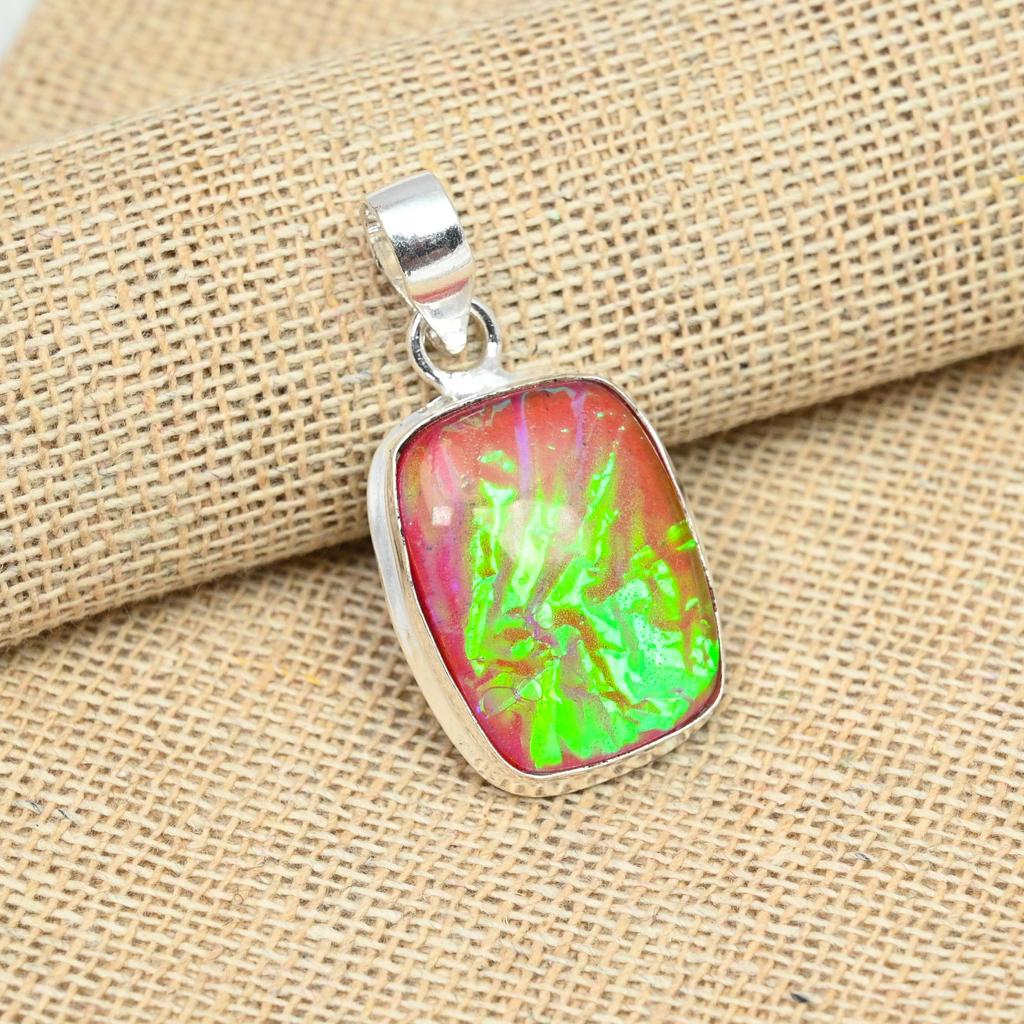 Pink Australian Triplet Opal Gemstone Solid 925 Sterling Silver Handmade Pendant