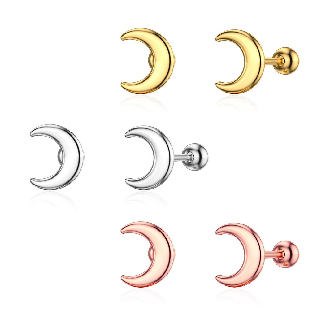 925 Sterling Silver Simple Earrings Screws Twist Ear Nails 0.8mm Earrings Female Anti -blocking Moon Earrings Real Rose Gold