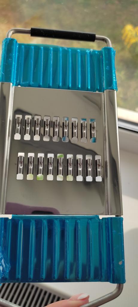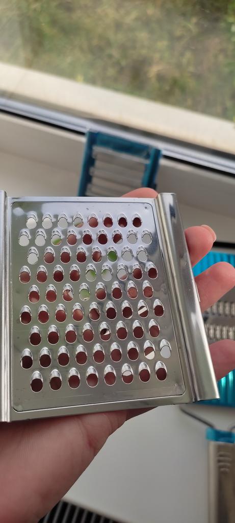 Metal kitchen grater for vegetables 🥕🫑🥒🍠🍆🍅🥔 🥕There are 3 nozzles. 🥔Very convenient to use. 🍅 Nozzles are easily changed. 🍆Doesn't take up much space. 🍠I liked the product👍