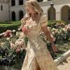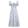 Summer Woman's Retro Elegent Suquare Neck Puff Sleeve Floral Print Maxi Dress Partywear SweetClub Dress