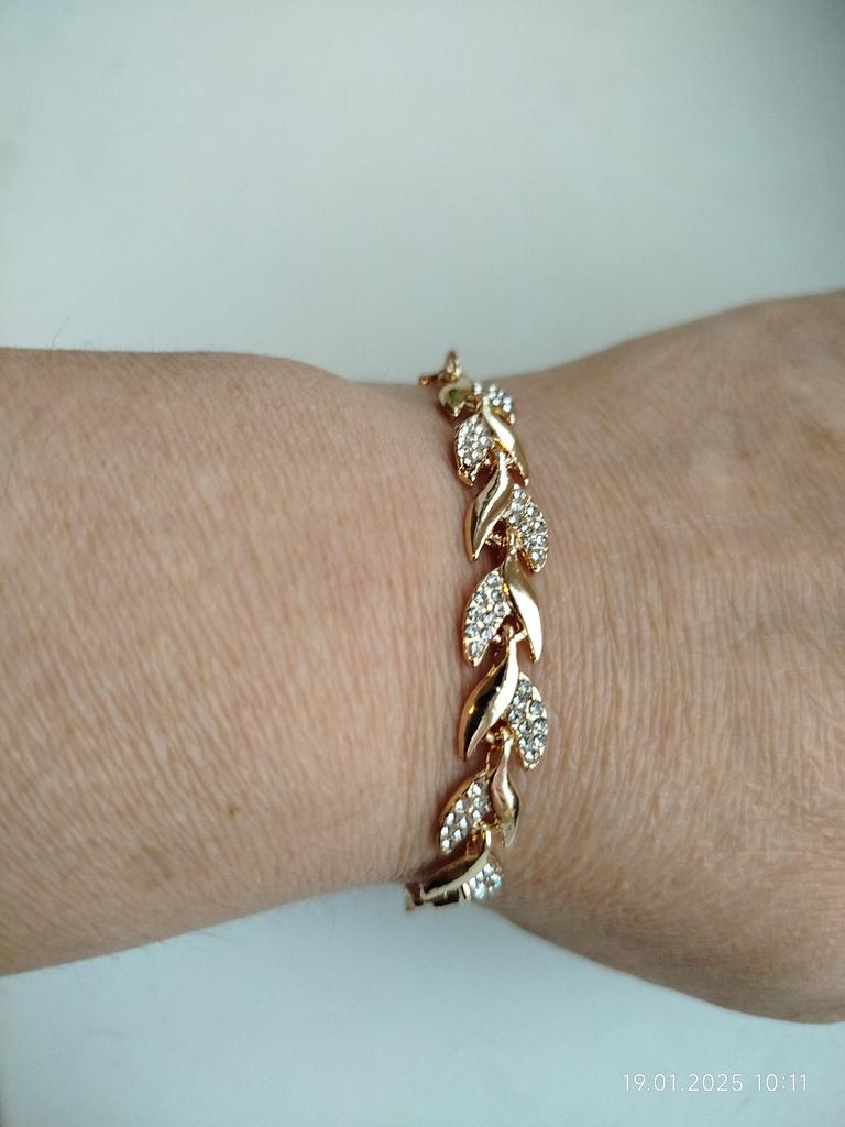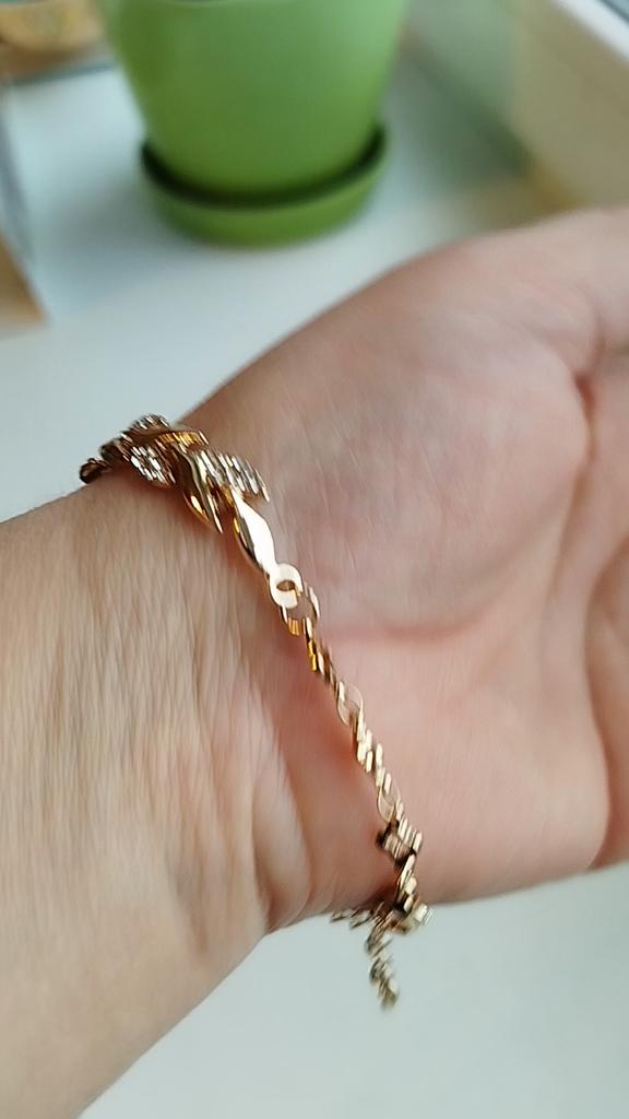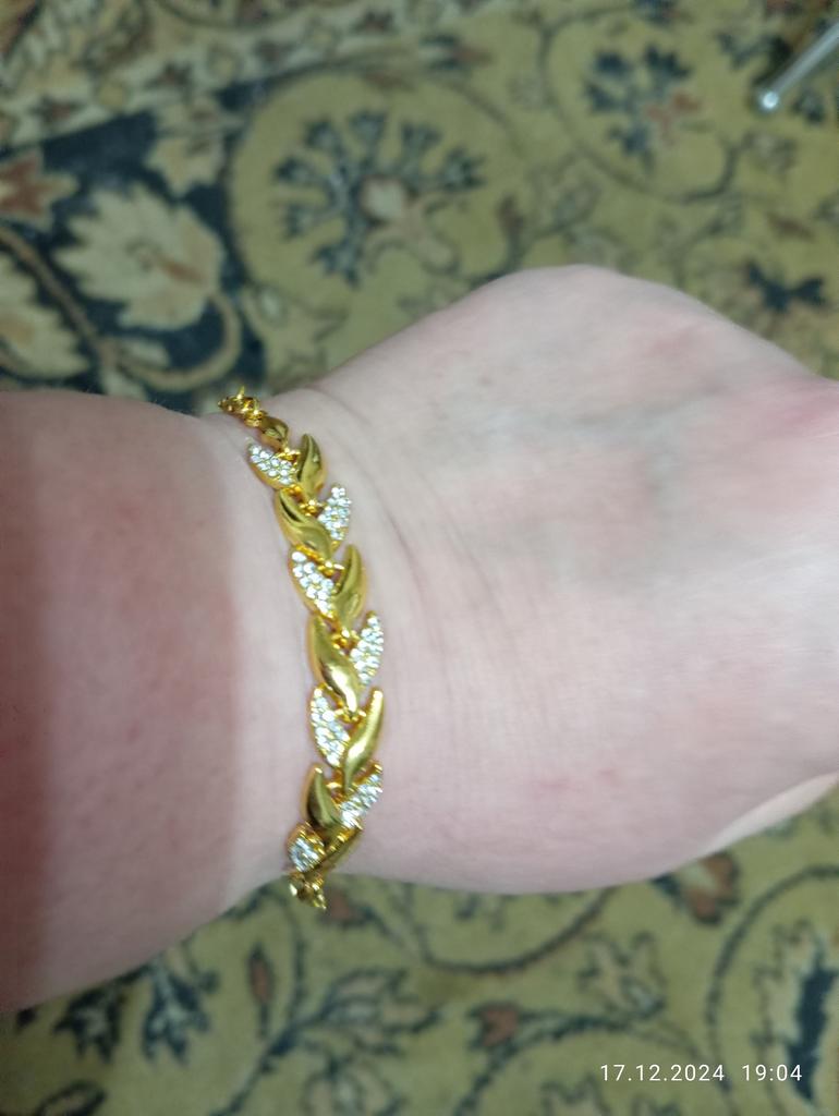 Considering the price, I can say that the bracelet is lovely, it looks like in the picture, I can recommend it for purchase. It is practically indistinguishable from a gold ornament.