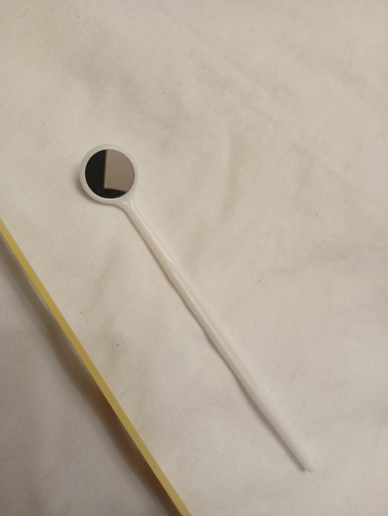A little mirror, useful for examining the oral cavity.