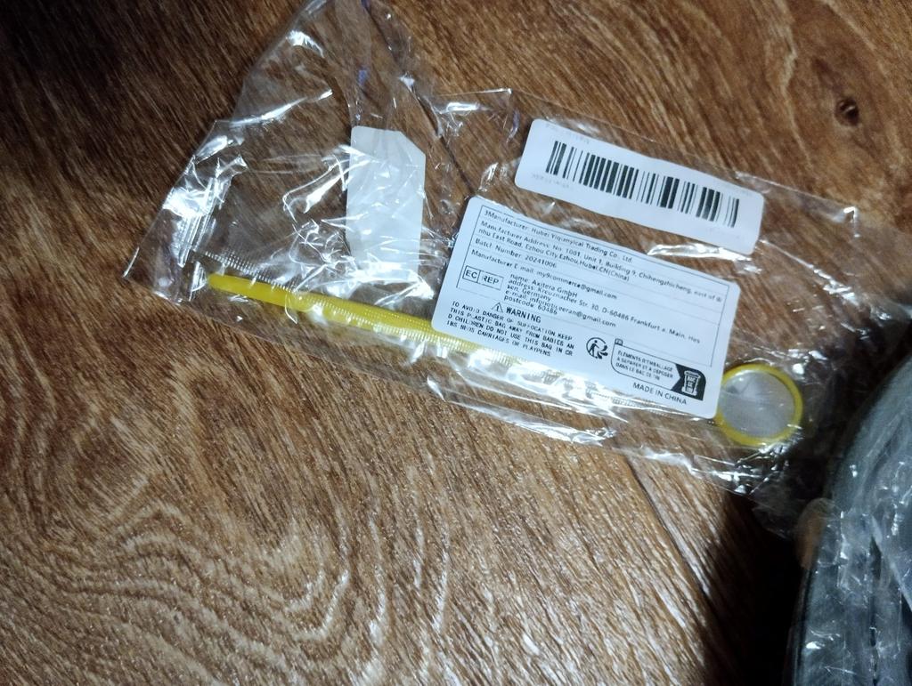 Nothing is visible in the mouth. Throw away