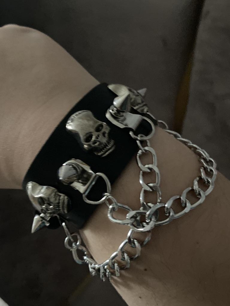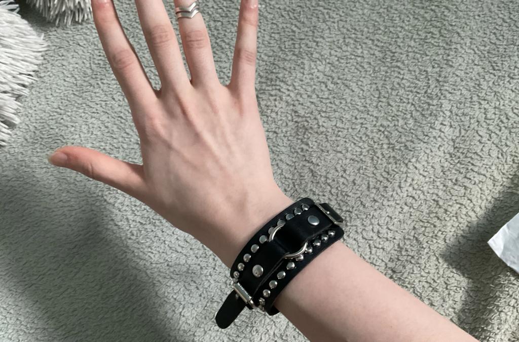 Soft leather substitute, riveted bracelet. 👍
