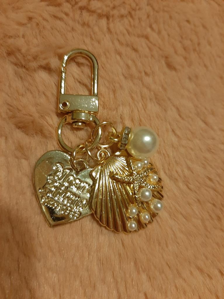 1PC Cute Keychain Heart Keychain Shell Keychain Metal Pendant Fashion Bag Ornament Pearl Pendant