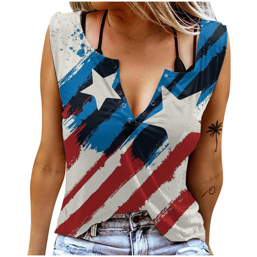 Women Tanks Sexy V Neck Sleeveless Summer Tops Vest 3D Print Slash Pentagram Tops