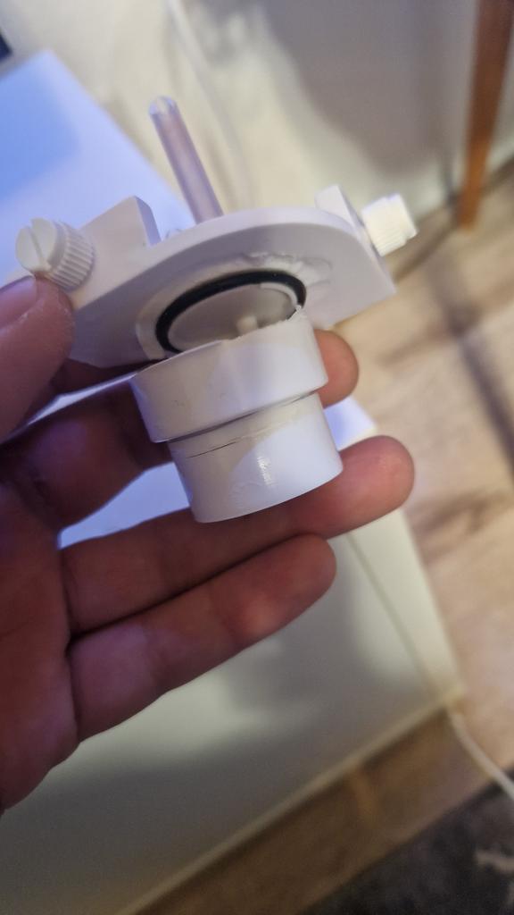 Adapter does not fit into the thread. Without an adapter, the thread is too wide for the usual bottle necks.
