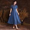 Johnature Chinese Style Cheongsam Vintage Casual Dress Summer Women Embroidery Short Sleeves Collar Dress