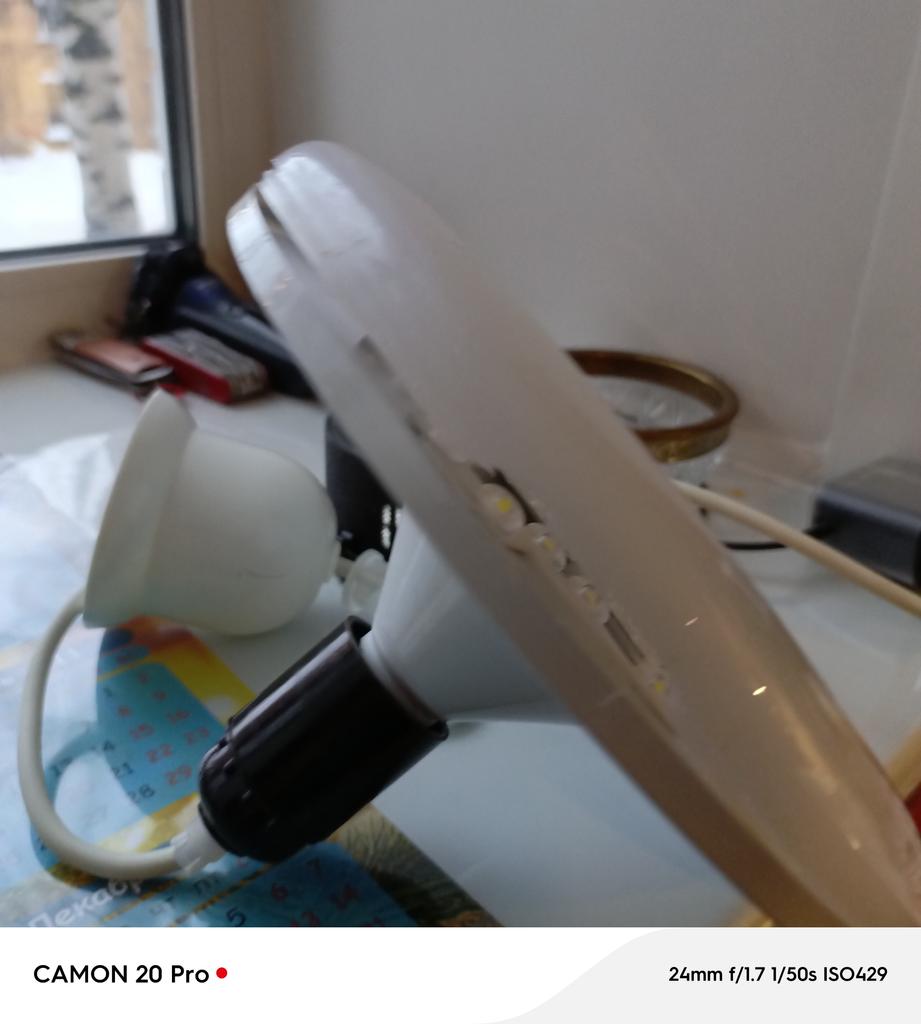The lamp says 20 watts, but it illuminates the room much worse than the dismantled 12 watt. I had to replace the old light bulb.