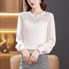 Mesh Sleeved Bottoming Shirt for Women's Spring Autumn Hollowed Out Knittwear New Ice Silk Long Sleeved T-shirt Knitted Top