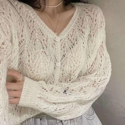 Hollow Out Knitted Sweater Outerwear for Women Cardigan Autumn 2023 Loose Short Outerwear Gentle Cardigan Sweater Female Top