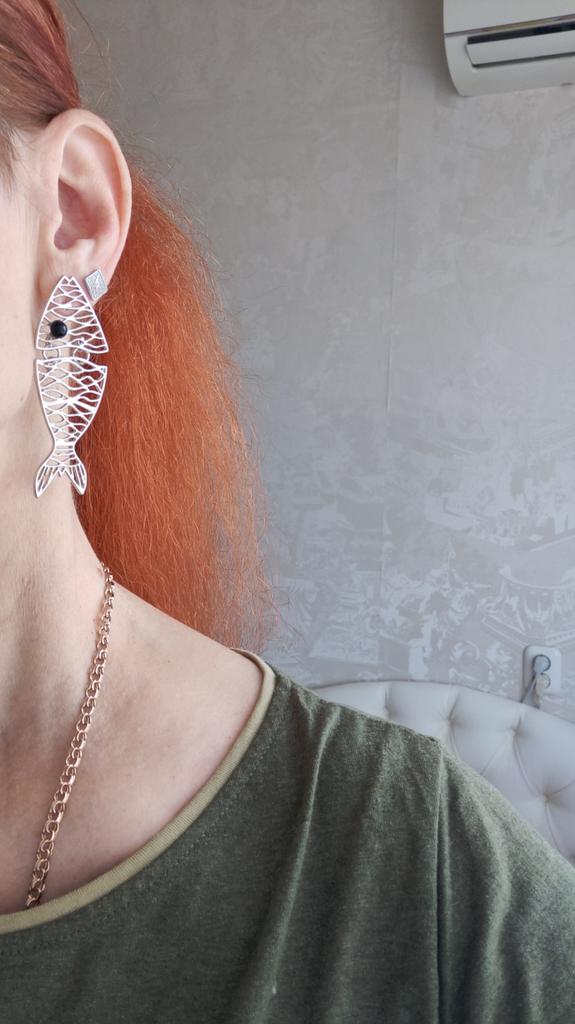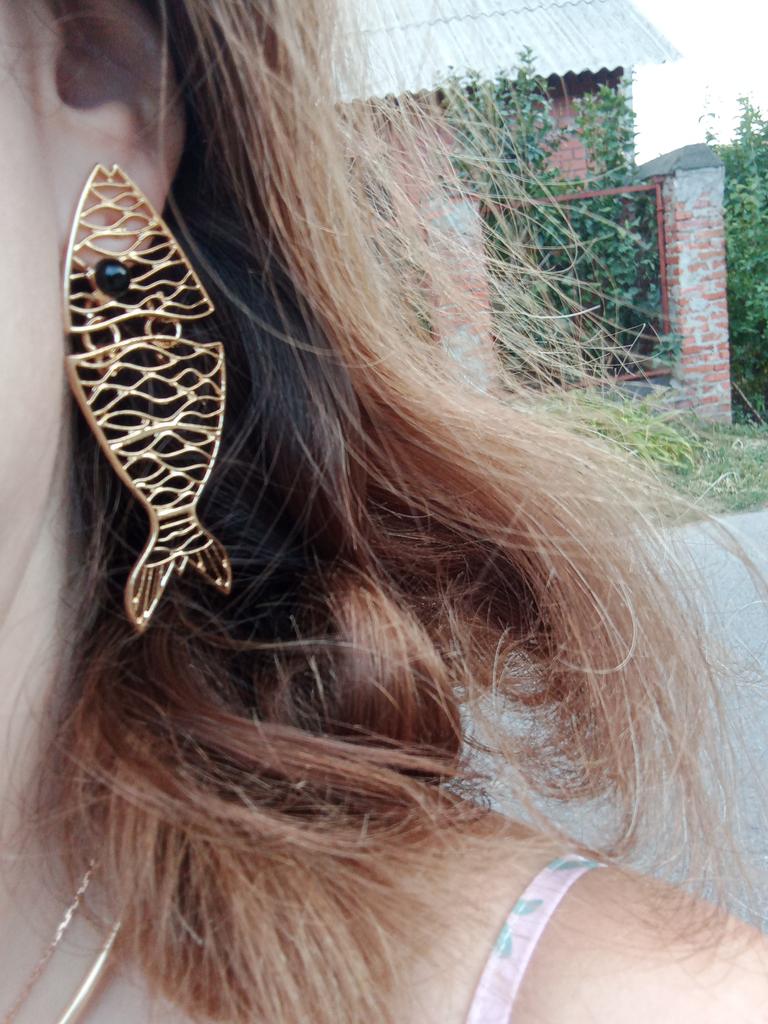 Oh, these goldfish!!! The head of the fish is attached to its body on rings, so that the product tends to jump out of your ears when walking, a very high-quality and original decoration for the summer!