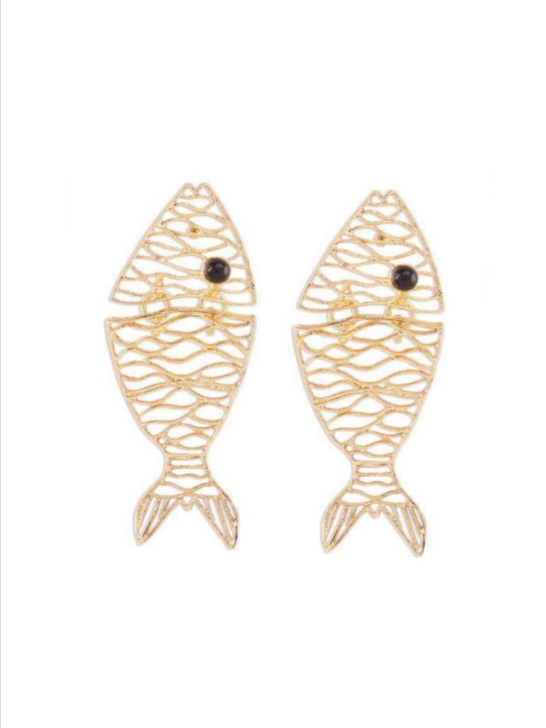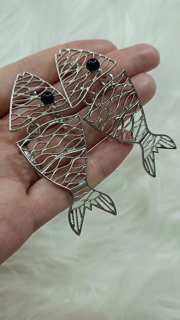 Hollow Stitching Fish-Shaped Earrings Za Trend Exaggerated Earrings Temperament Creative Earrings