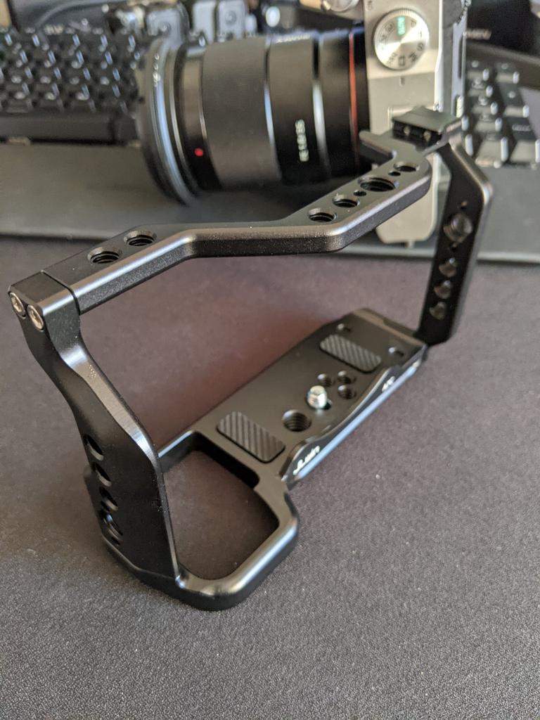 Awesome camera cage. Every side is detachable. Fits very well. Doors on the left are NOT obstructed, which is great. All necessary tools are included. Also, the bigger hex wrench (for the camera screw) is kept by a magnet on the bottom.