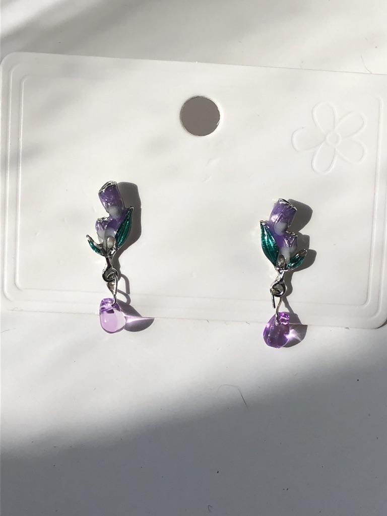 Pinkdudu Sweet Purple Tulip Drop Earrings Romantic Cute Enamel Flower Earring for Women Jewelry Gifts PD1518