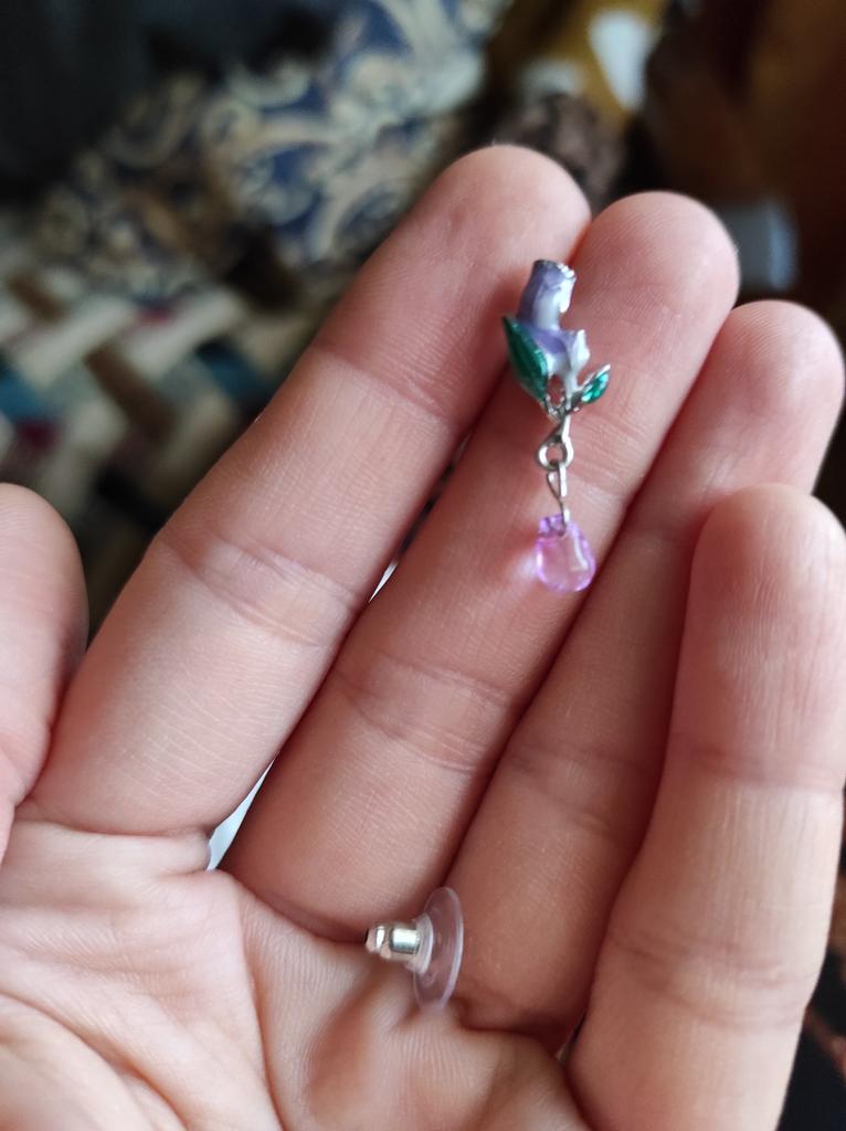 The package can't be opened because the earring is bent too much. Money refunded, stars added.