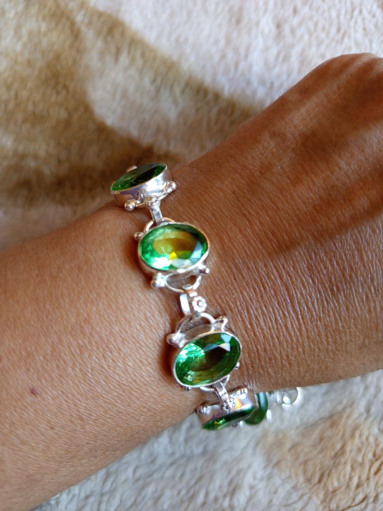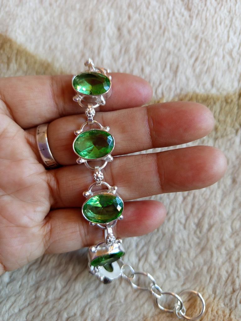 Tsavorite Gemstone Handmade Solid 925 Sterling Silver Bracelet For Women