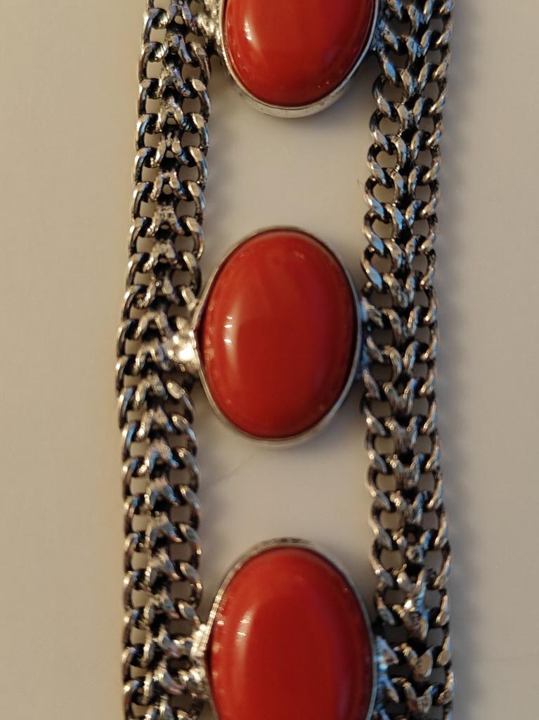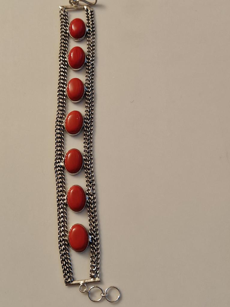 Italian Red Coral Gemstone Handmade Solid 925 Sterling Silver Bracelet For Thanksgiving