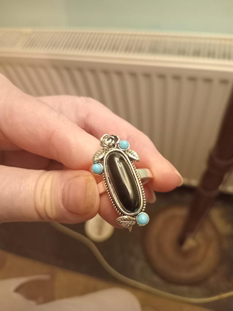 Boho Blue Black Stones Ring Silver Color Rings for Women Statement Ring Floral Ring Party Jewelry