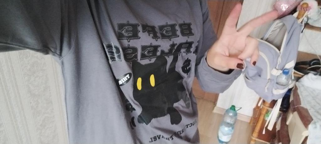 Grunge Cat Tshirts Women Harajuku Korean Fashion Oversize Long Sleeve T Shirts Female Hip Hop Vintage Gray Top Loose