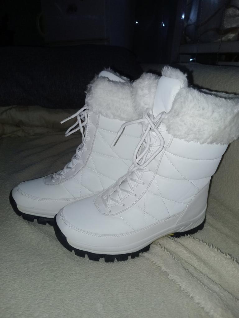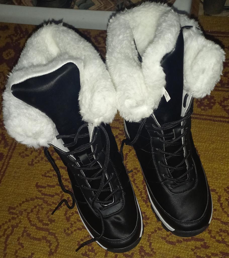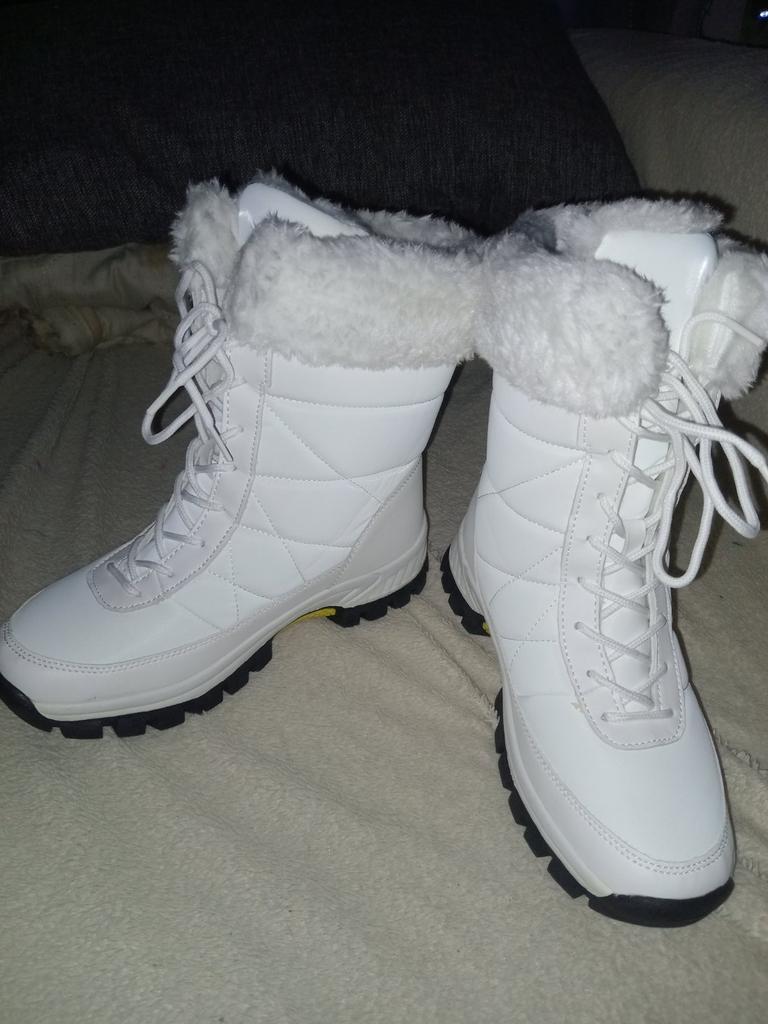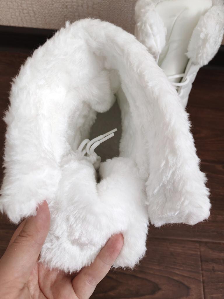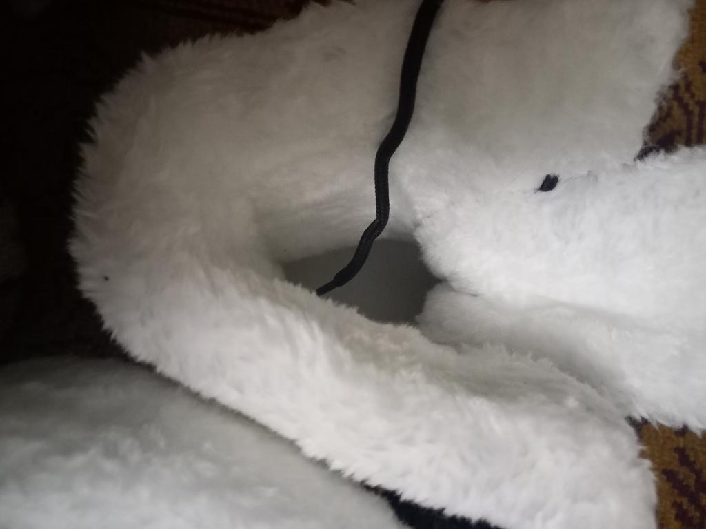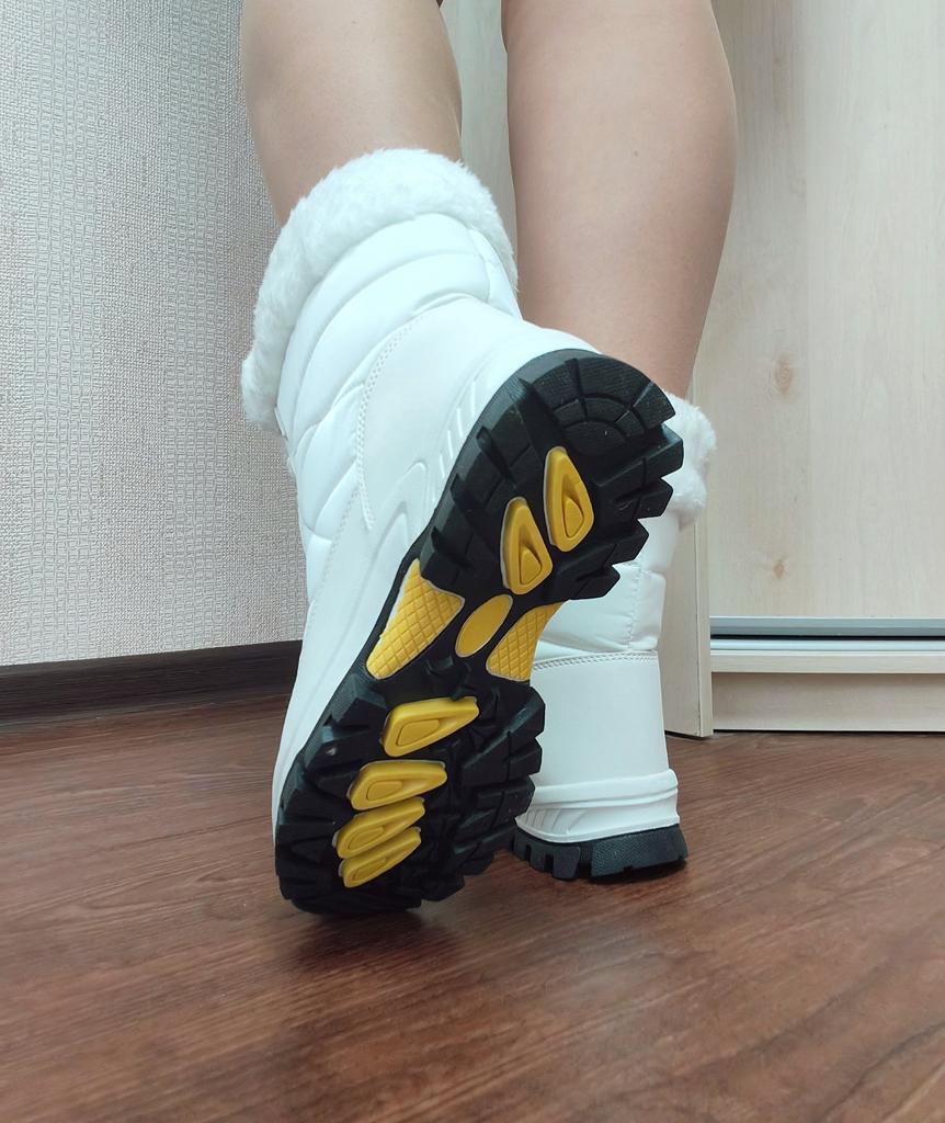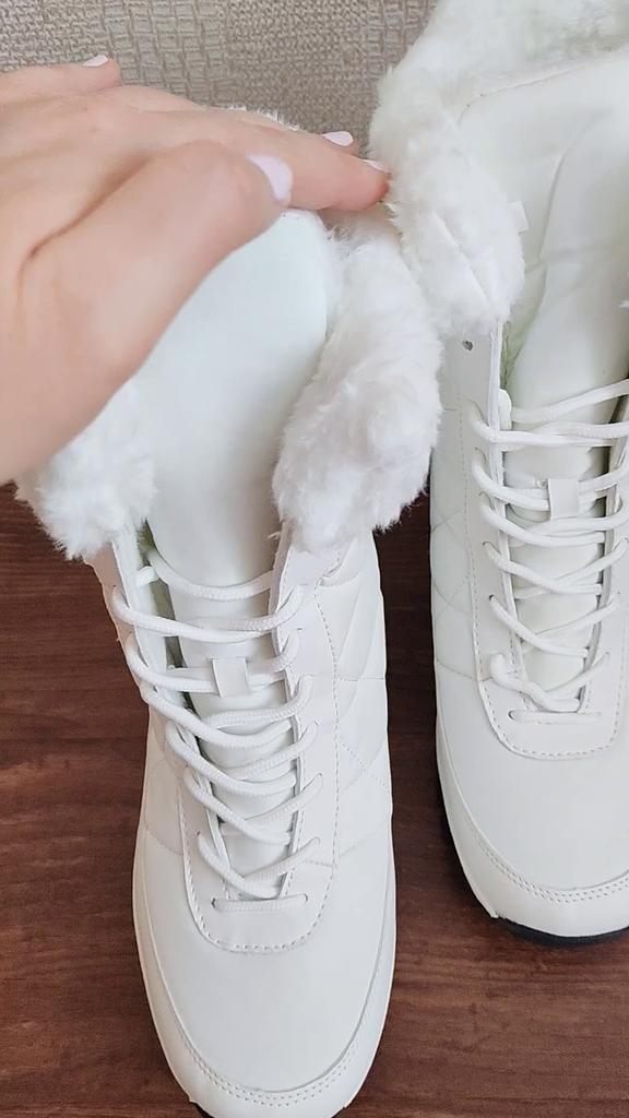 Winter boots with fluffy white fur The fur is artificial, soft, thick and long. I hope it will keep you warm in the winter. The boots are sewn neatly, there are no irregularities, traces of glue or other visible defects. The sole is corrugated, high, just for winter walks. The quality corresponds to the economy or low mass market segment. For the price it seems like a good purchase to me. See video review and photos for more details.