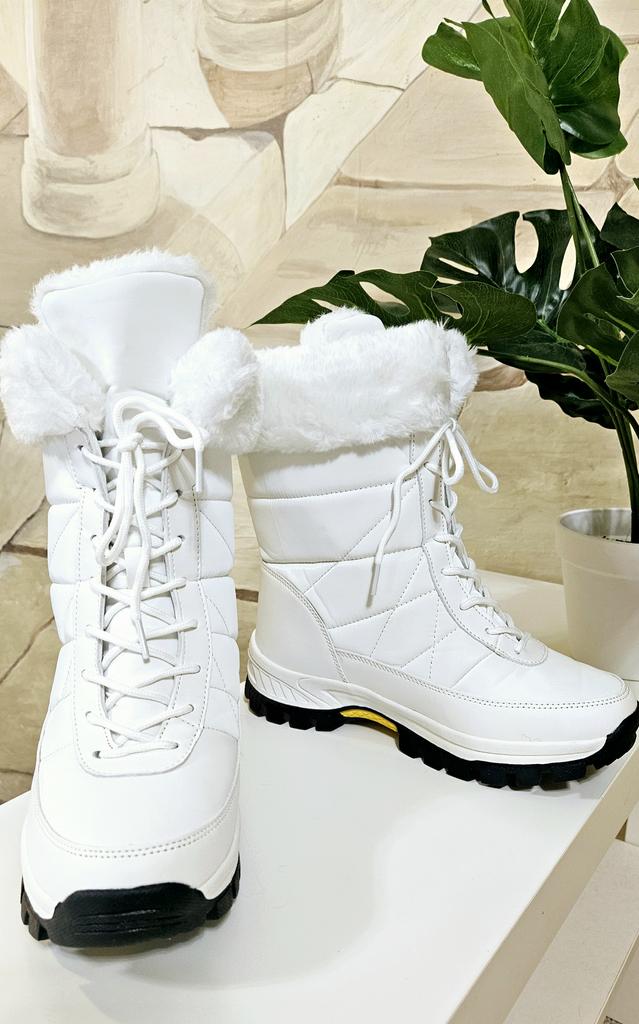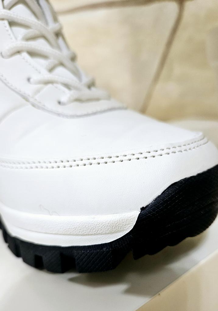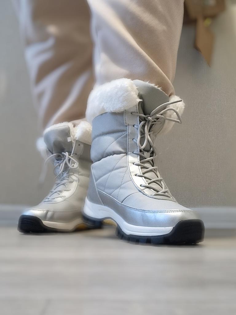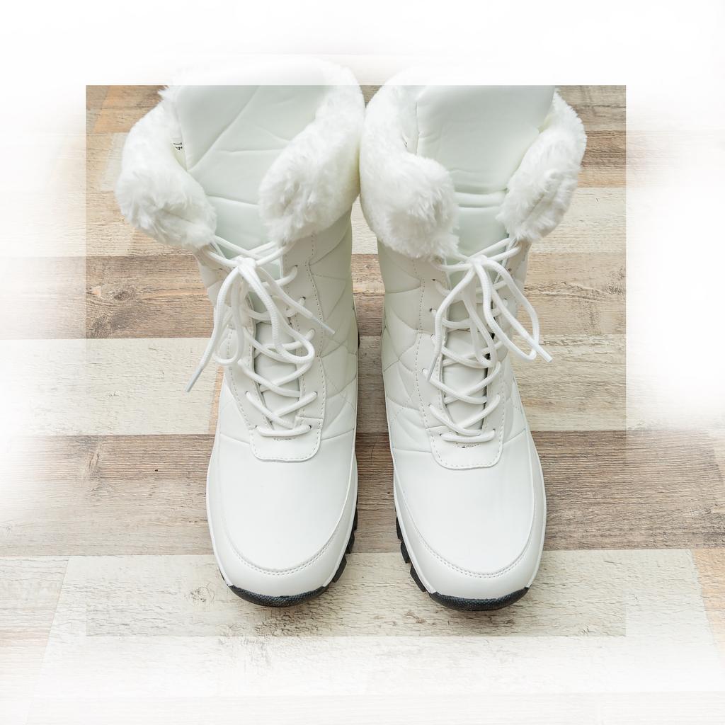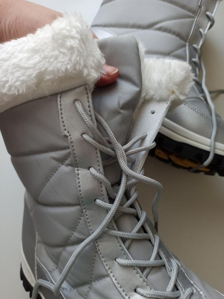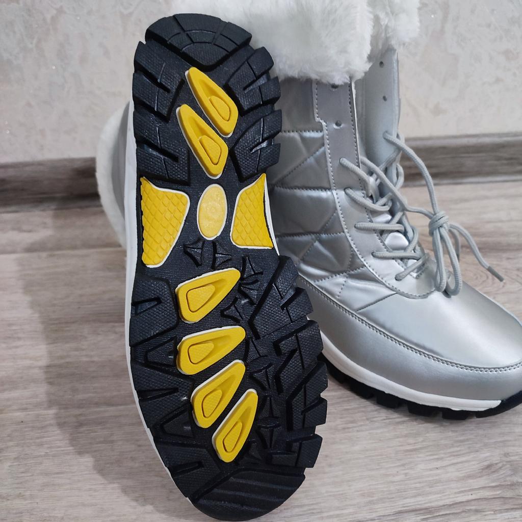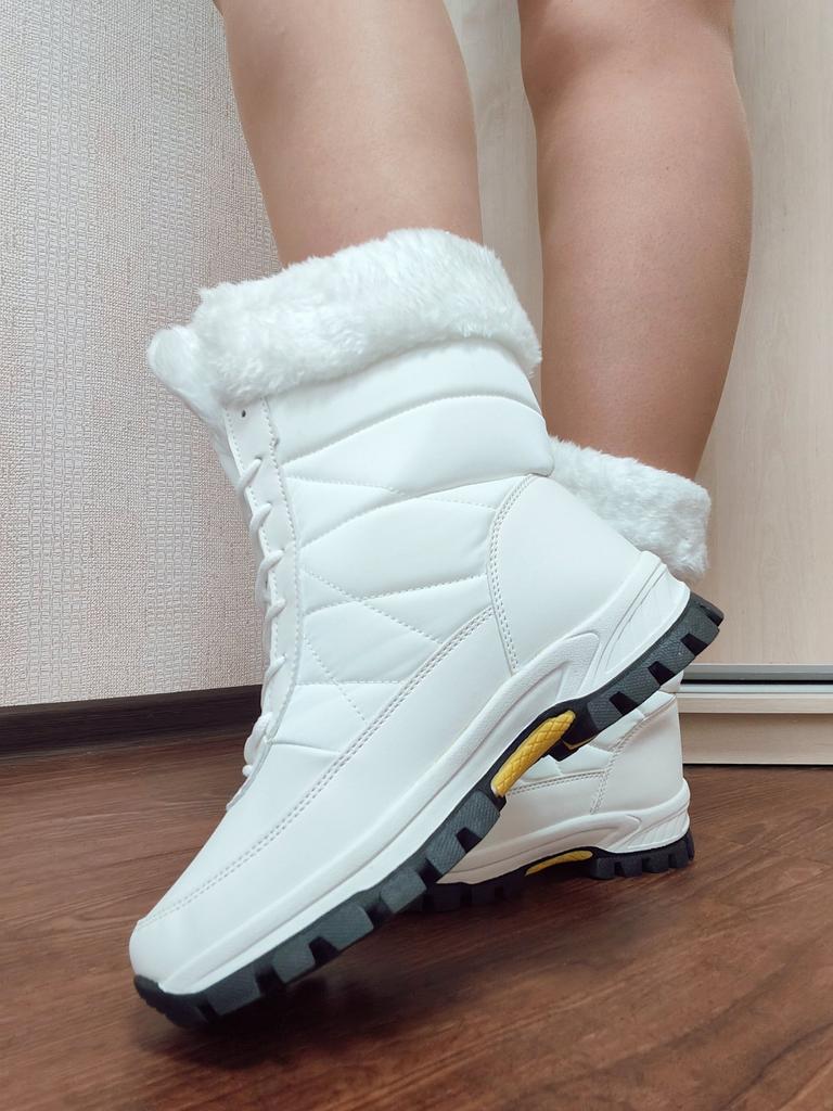Winter boots with fluffy white fur The fur is artificial, soft, thick and long. I hope it will keep you warm in the winter. The boots are sewn neatly, there are no irregularities, traces of glue or other visible defects. The sole is corrugated, high, just for winter walks. The quality corresponds to the economy or low mass market segment. For the price it seems like a good purchase to me. See video review and photos for more details.