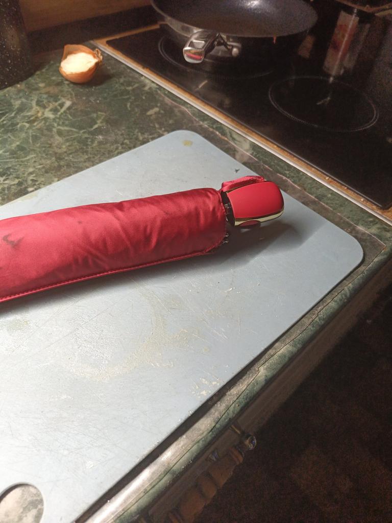 Super umbrella, folds up and takes up very little space, while looking quite expensive