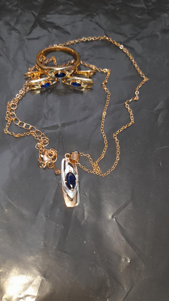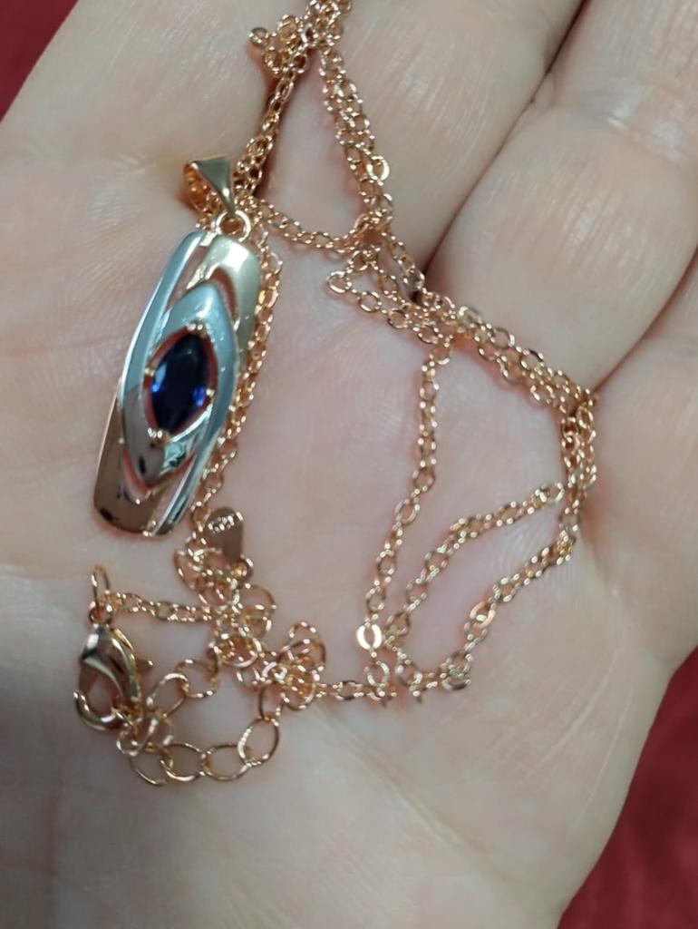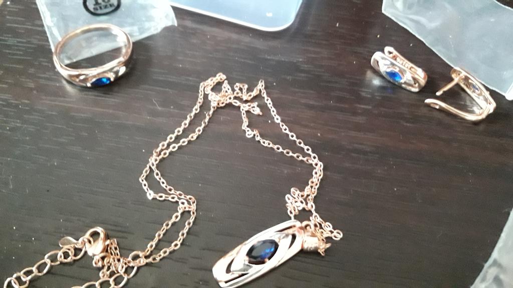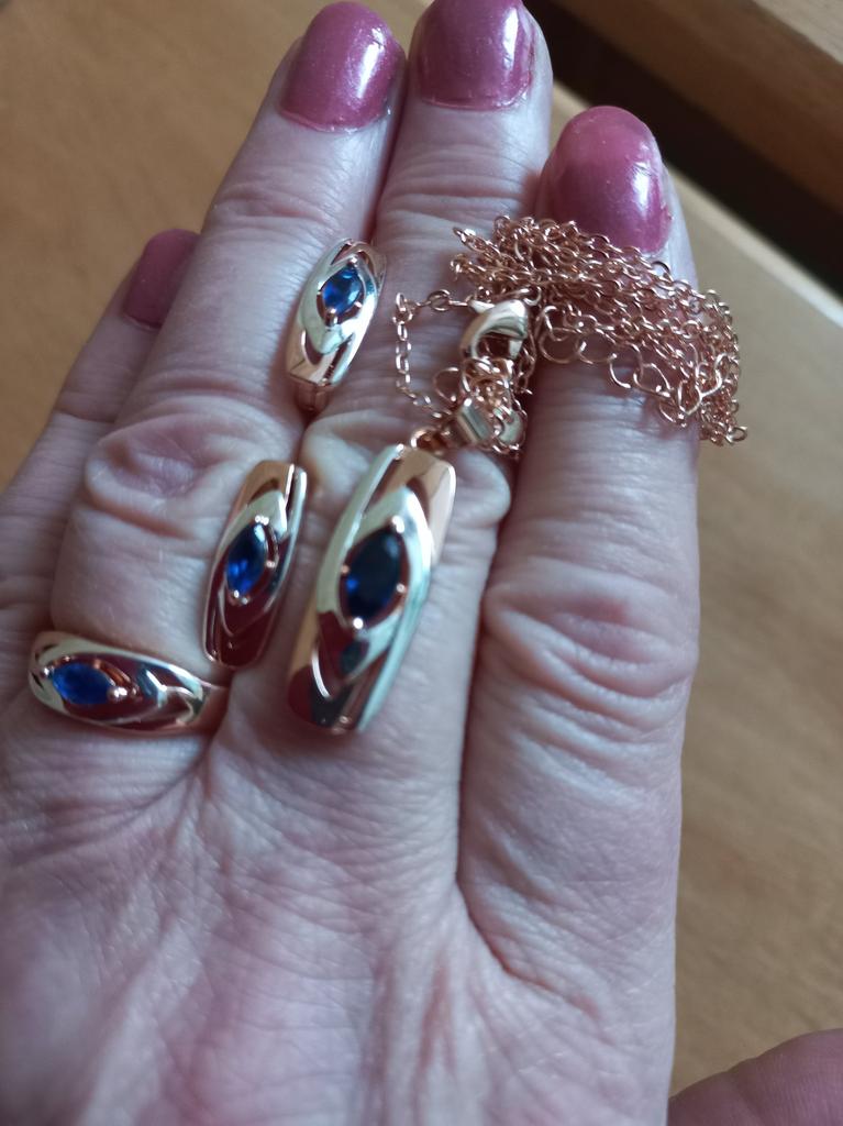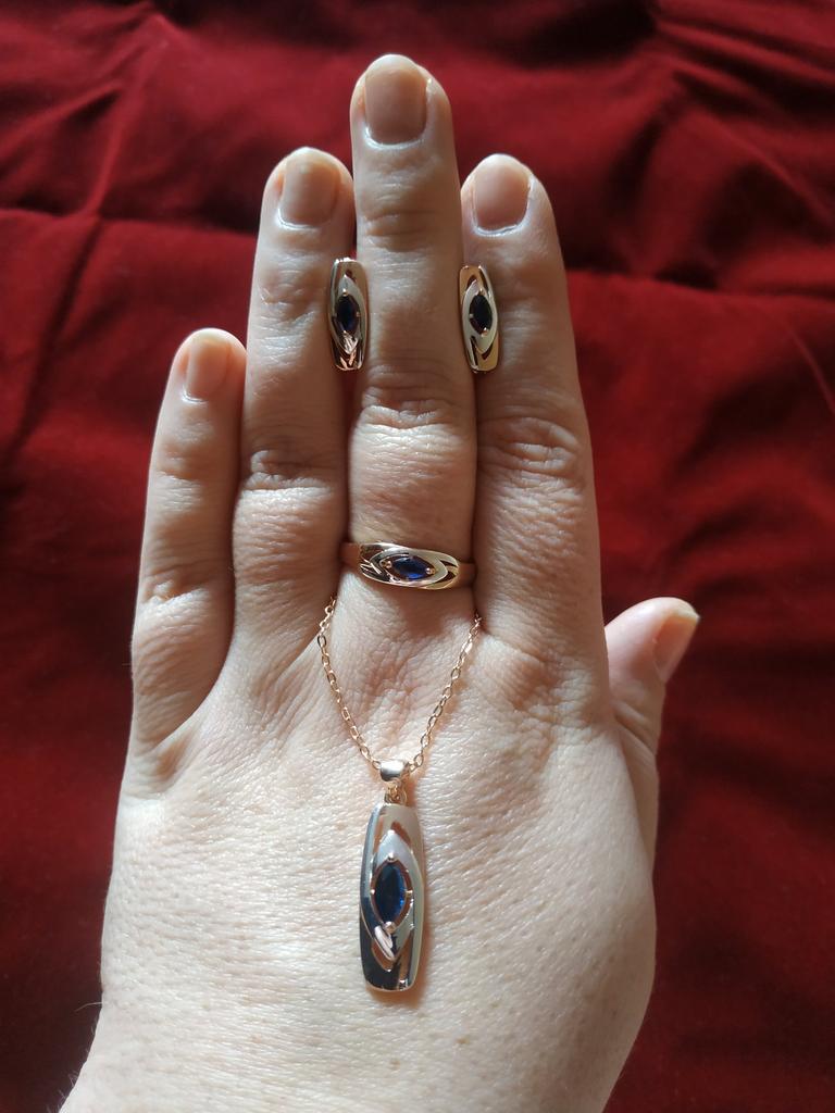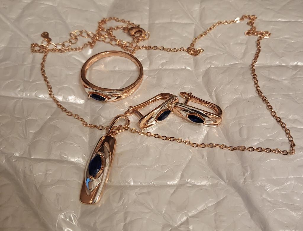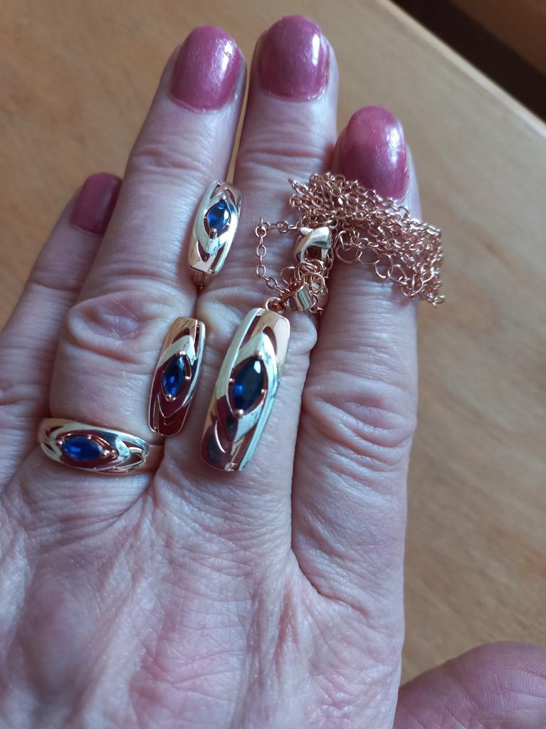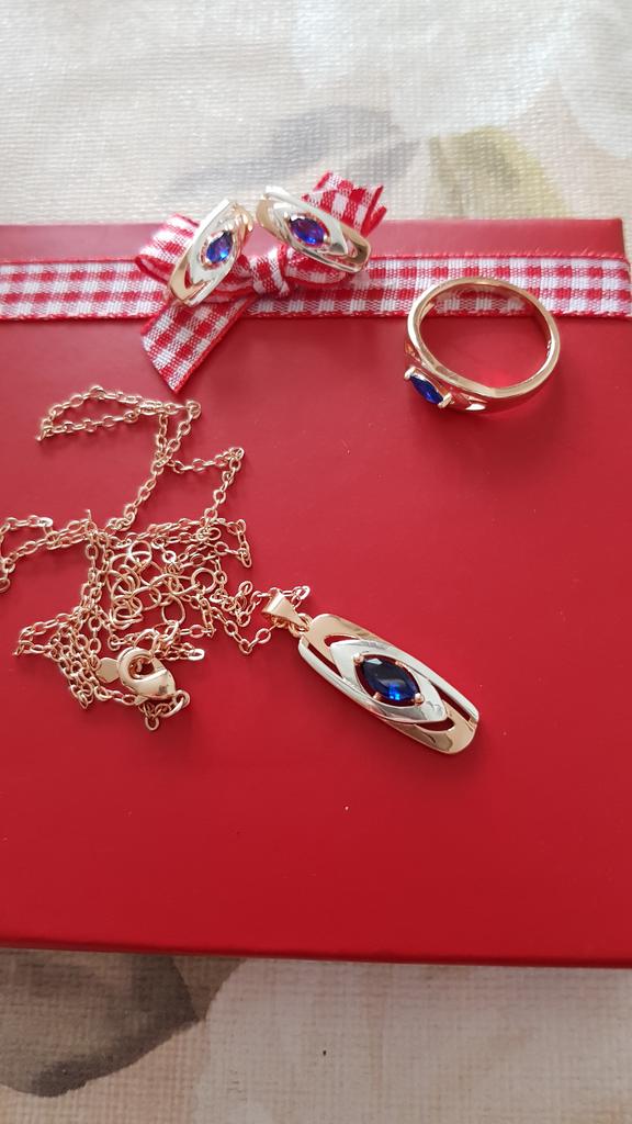 The set is of high quality, the gilding is close to natural. A set for every day. The price/quality ratio is good. The stone cannot be distinguished from sapphire.