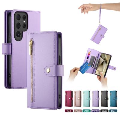 Multi-function Zipper Wallet Case with 5 Card Slots for Samsung S23 S22 S21 A13 A14 A52 A53 A54 iPhone 14 13 12 11 PU Foldable Cover with Hand-strap