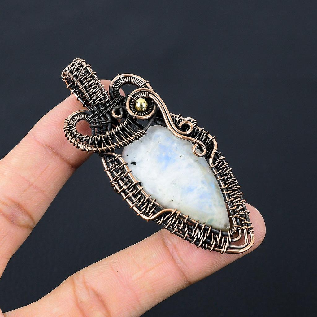Moonstone Gemstone Pure Copper Wire Wrapped Handmade Pendant Jewelry For Gift