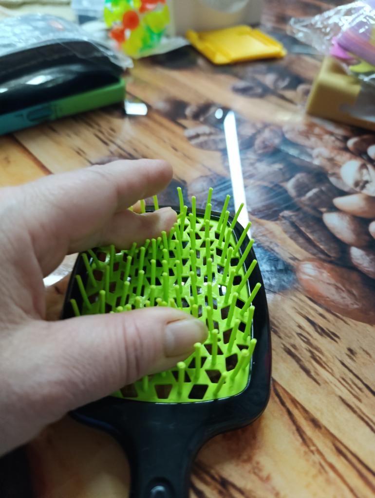 Combs curly and tangled hair well, but breaks quickly, the body should be made more durable, since the comb is designed for curly hair! It's a pity that it broke, ordering again and waiting a month is inconvenient