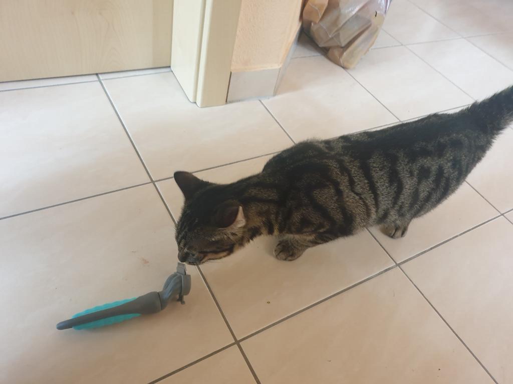The cat is delighted