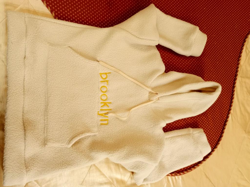The sweatshirt doesn't have very very wide sleeves at the bottom