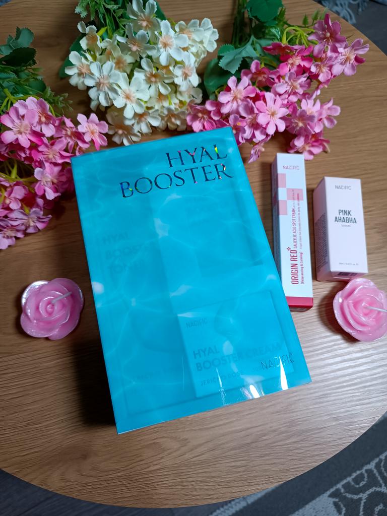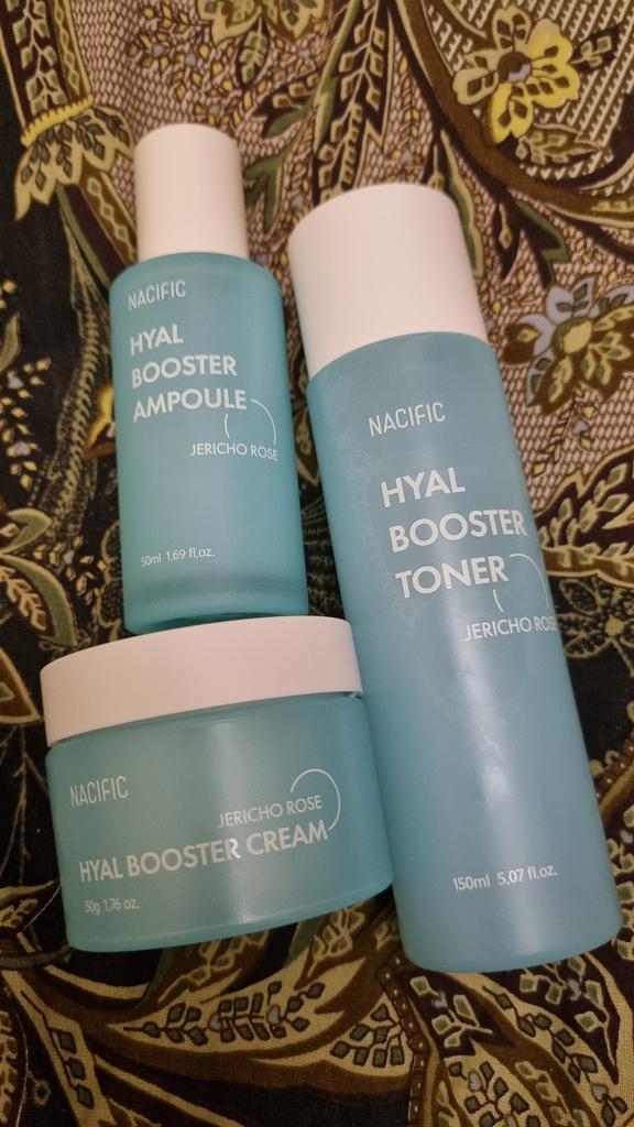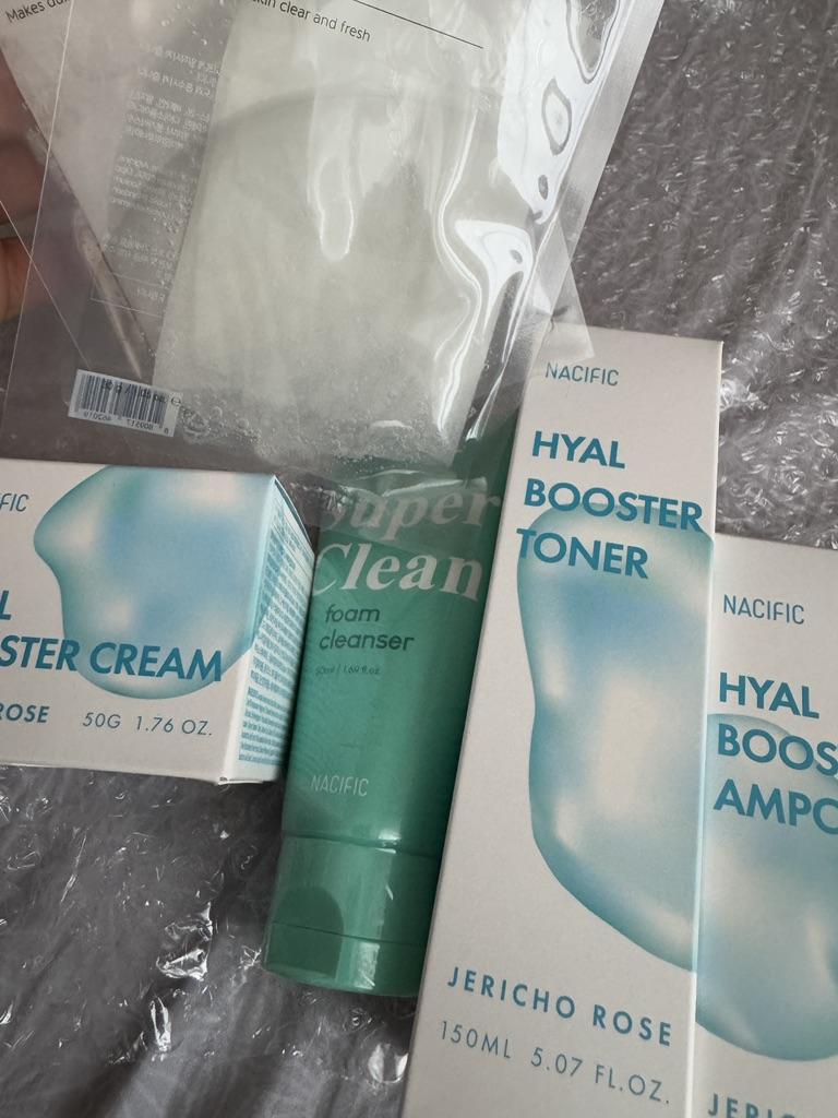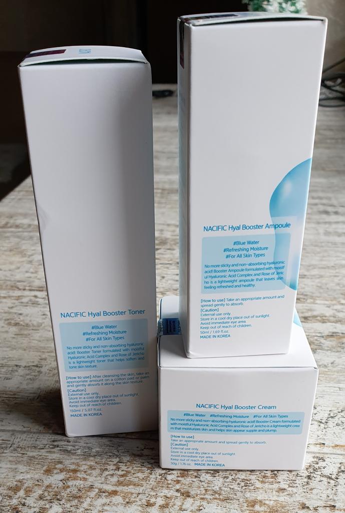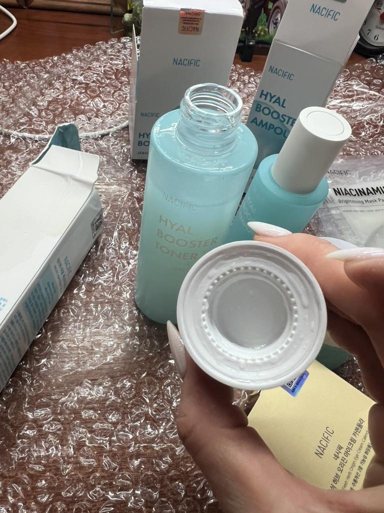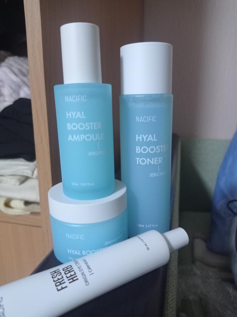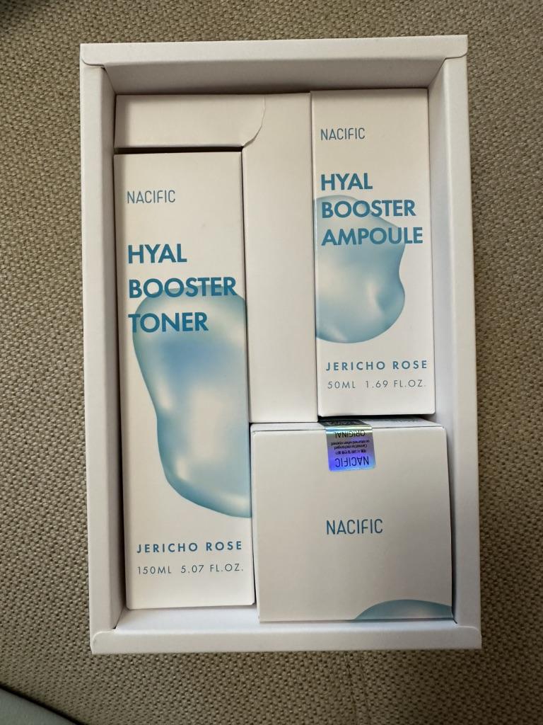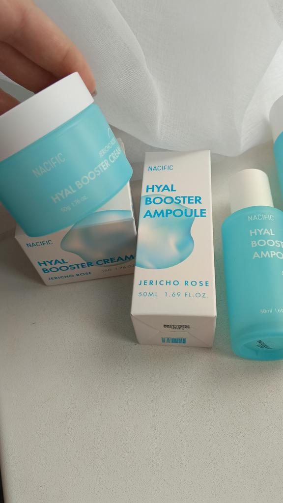 Hyal Booster Set (Toner, Ampoule, Cream + Gifts, NACIFIC Moisturizer Glowing Fresh Skin To start with, it's Korean products. Today I'm renewing the comment. It's a great product. High hydration and tightens the face. I have combination skin and this product was suitable for me and I benefited from it. Goodbye to dry and dull skin and hello to radiant and moisturized skin with Hyal Booster Ampoule. Used: Step 1: After washing your face, use toner to soften your skin.. Step 2: Take an appropriate amount of cream and spread it smoothly on the face and neck.. Step 3: Gently pat your face with your hands to allow it to absorb.. Shipping from 1 to 3 weeks The packet is properly protected against breakage.