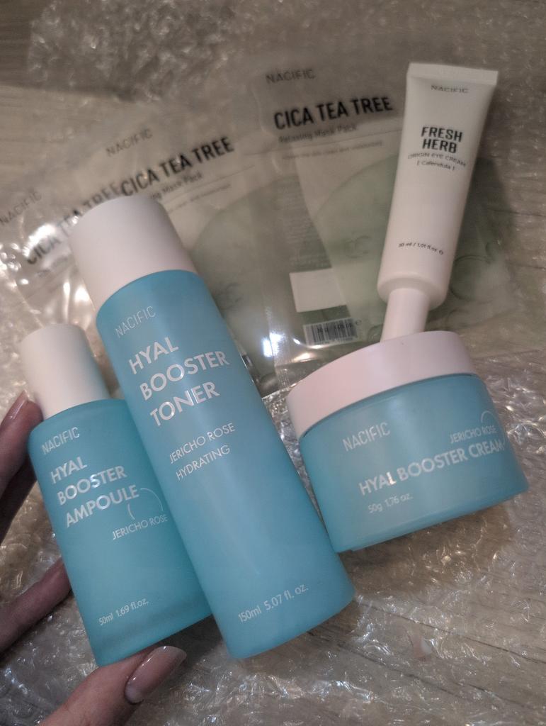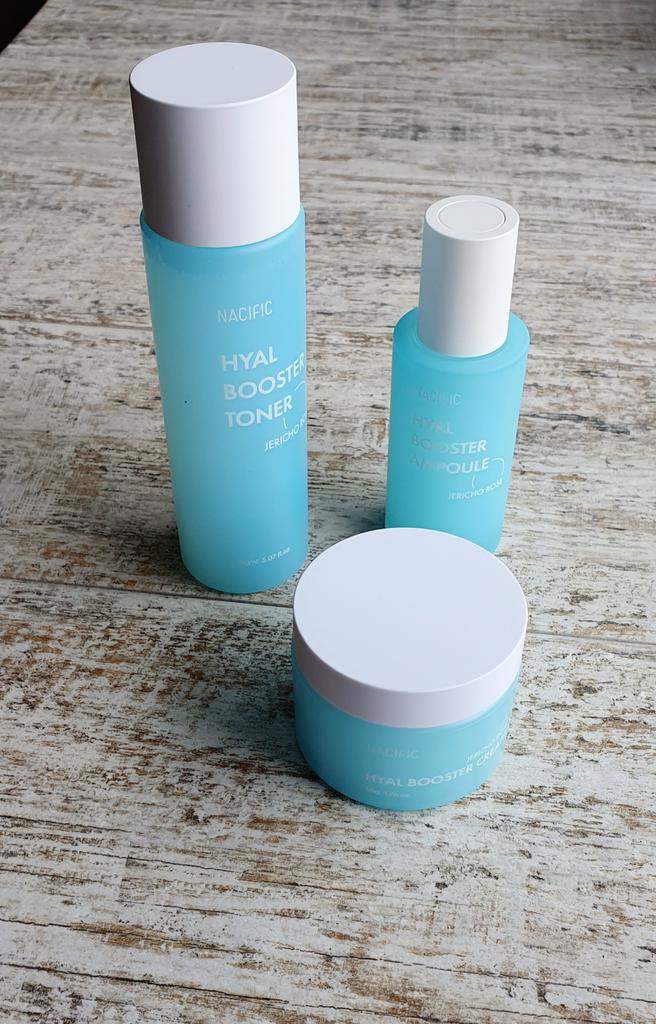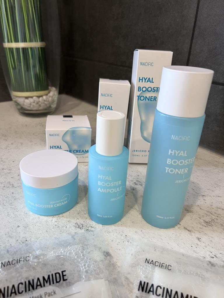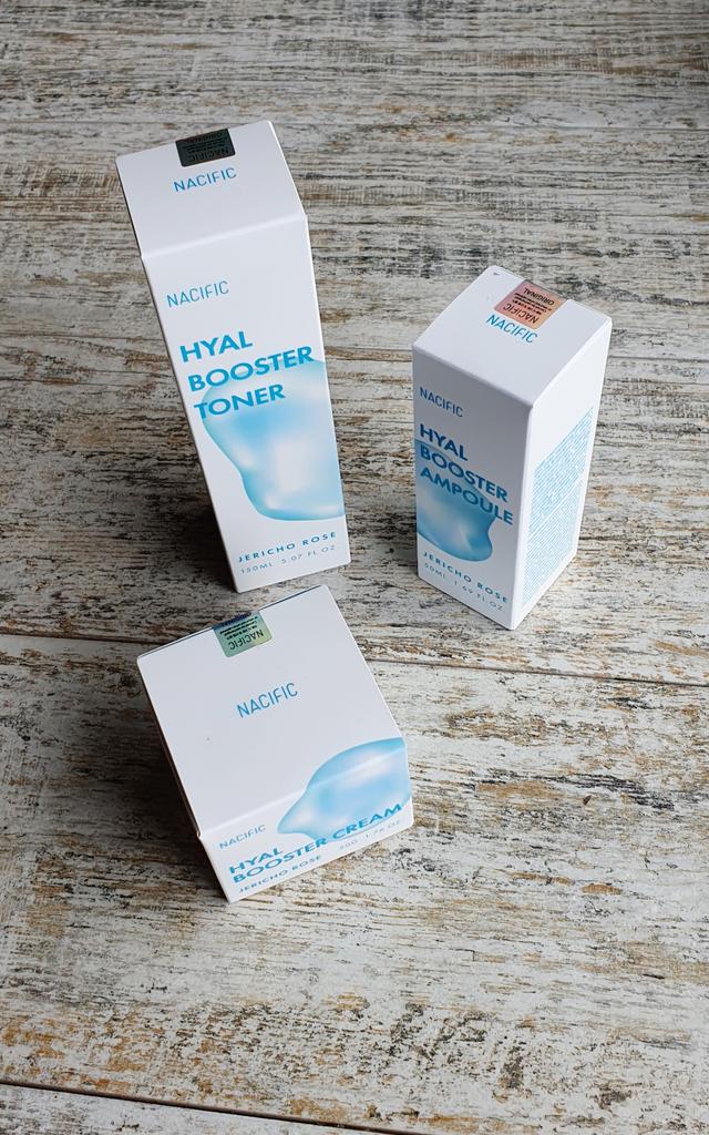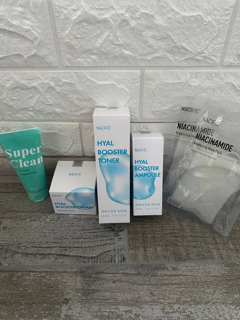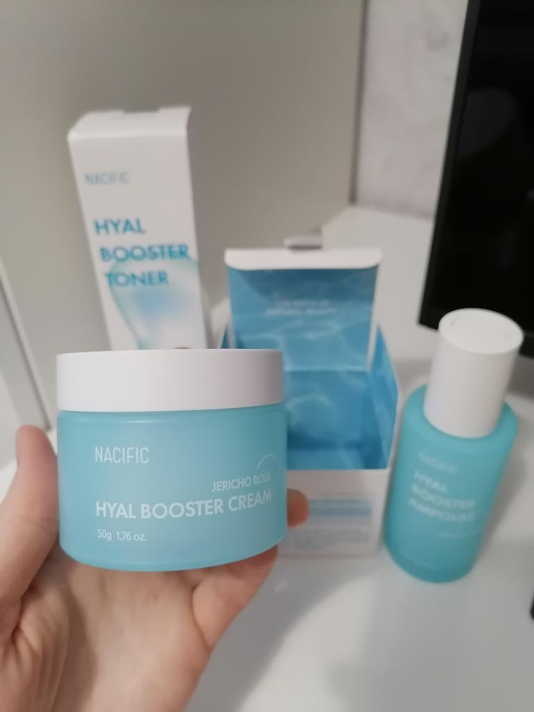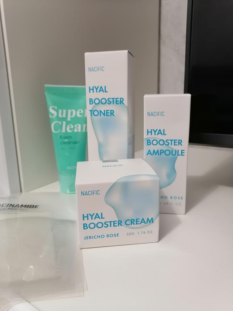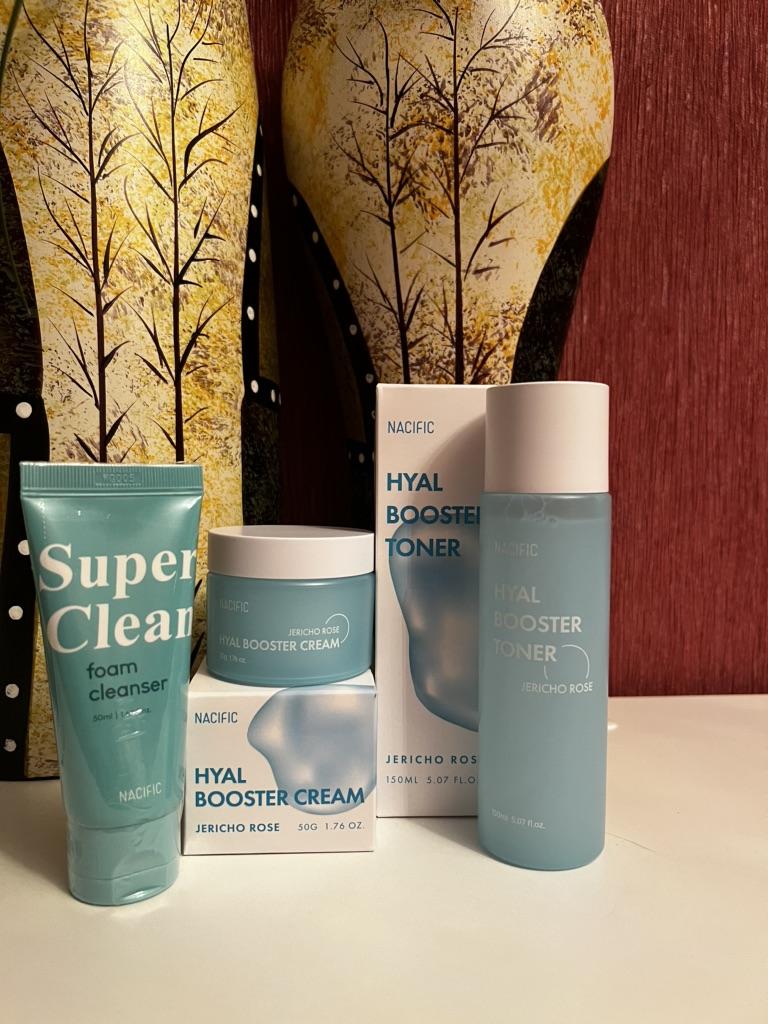 Hyal Booster Set (Toner, Ampoule, Cream + Gifts, NACIFIC Moisturizer Glowing Fresh Skin To start with, it's Korean products. Today I'm renewing the comment. It's a great product. High hydration and tightens the face. I have combination skin and this product was suitable for me and I benefited from it. Goodbye to dry and dull skin and hello to radiant and moisturized skin with Hyal Booster Ampoule. Used: Step 1: After washing your face, use toner to soften your skin.. Step 2: Take an appropriate amount of cream and spread it smoothly on the face and neck.. Step 3: Gently pat your face with your hands to allow it to absorb.. Shipping from 1 to 3 weeks The packet is properly protected against breakage.