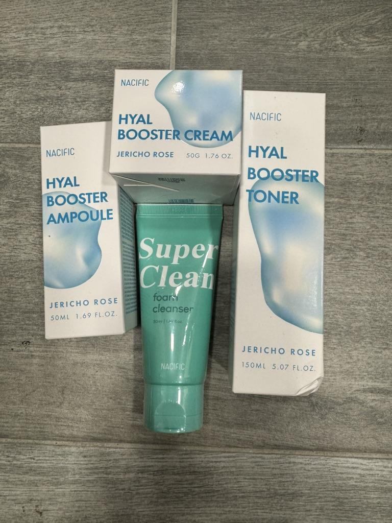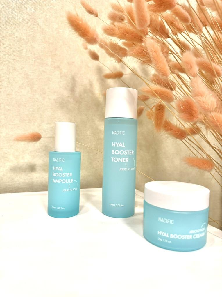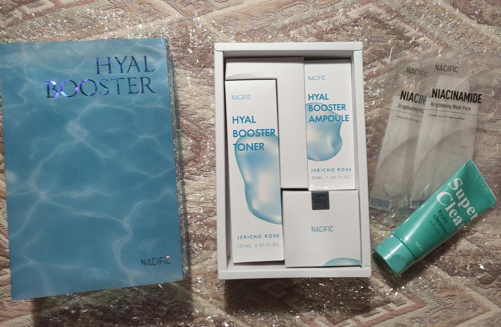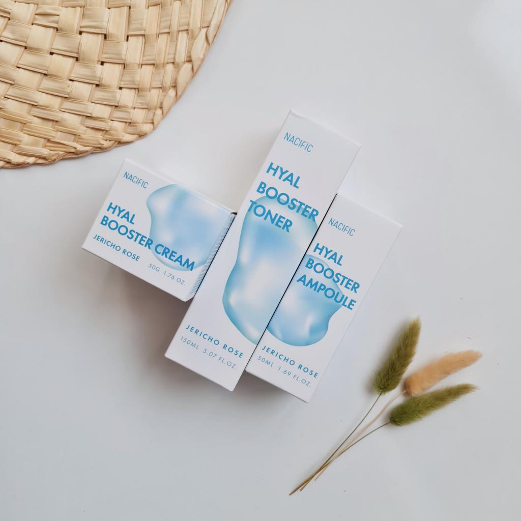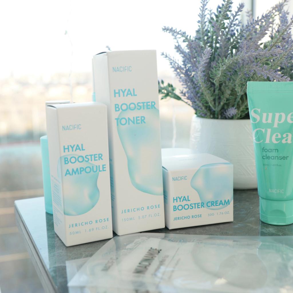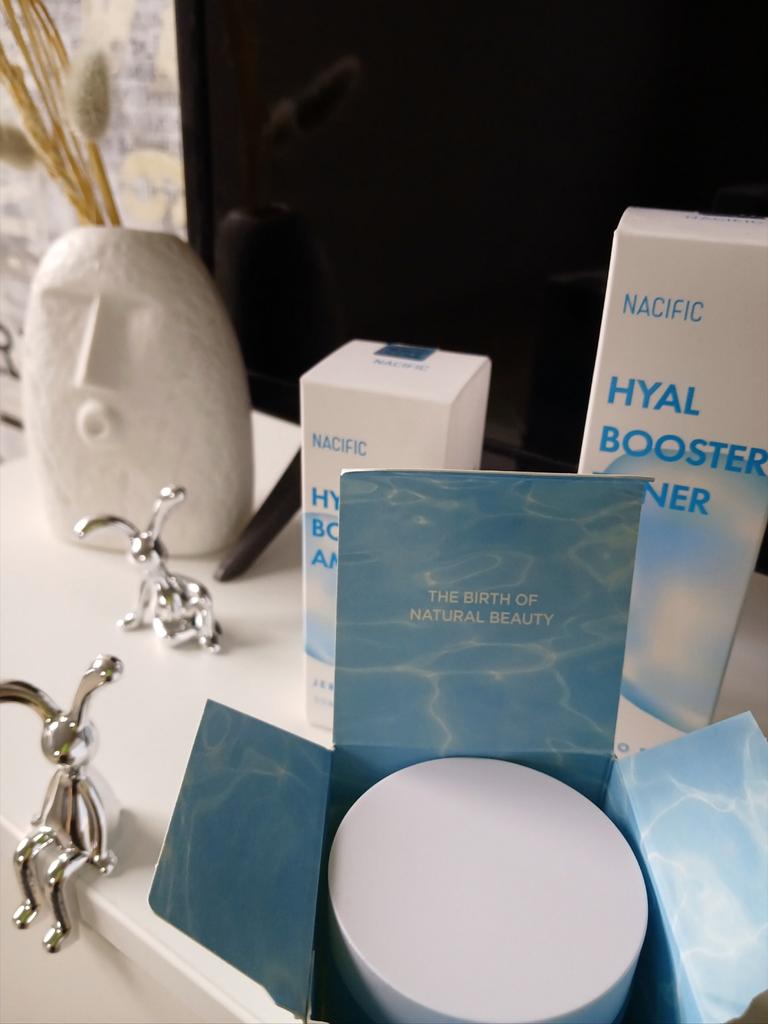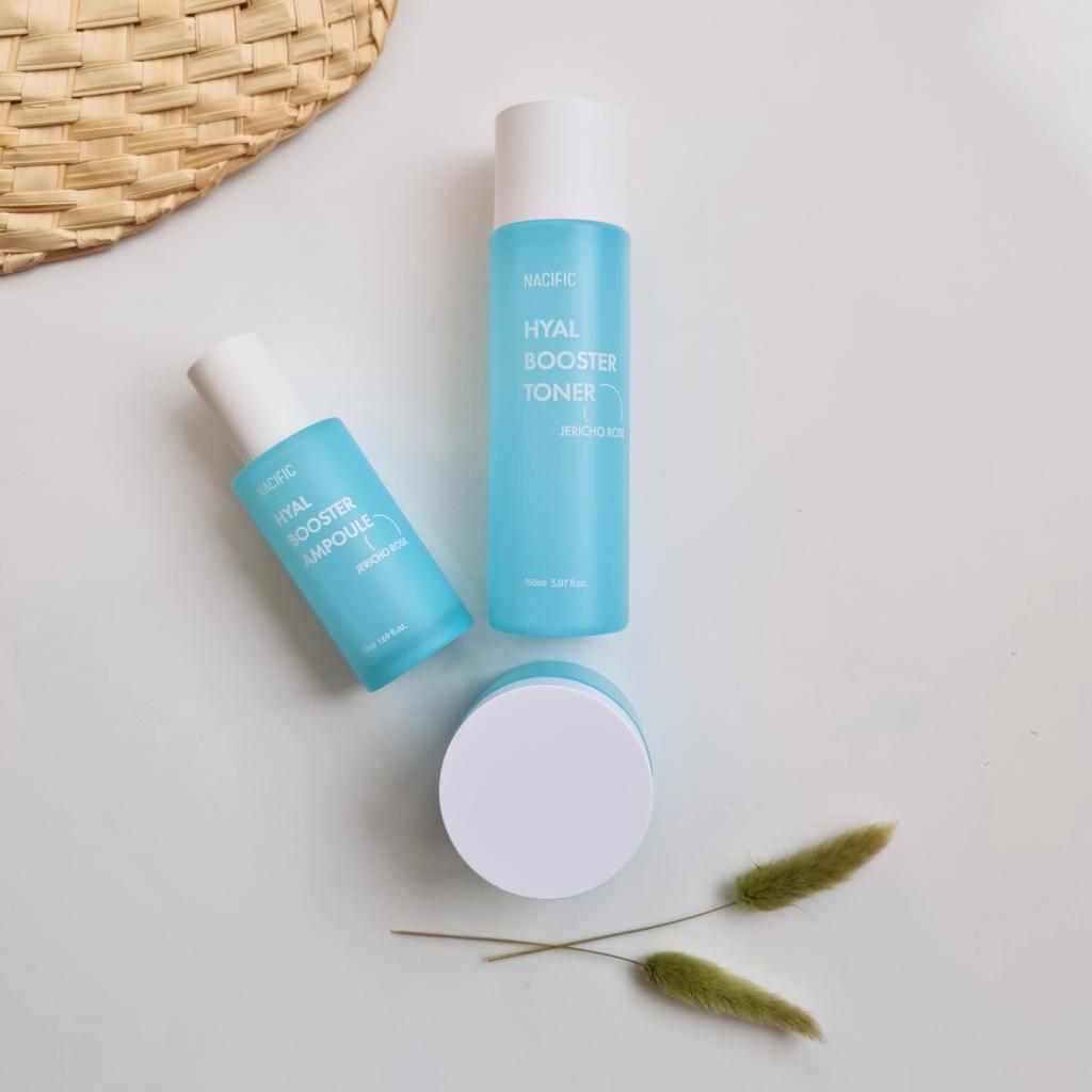 Hyal Booster Set (Toner, Ampoule, Cream + Gifts, NACIFIC Moisturizer Glowing Fresh Skin To start with, it's Korean products. Today I'm renewing the comment. It's a great product. High hydration and tightens the face. I have combination skin and this product was suitable for me and I benefited from it. Goodbye to dry and dull skin and hello to radiant and moisturized skin with Hyal Booster Ampoule. Used: Step 1: After washing your face, use toner to soften your skin.. Step 2: Take an appropriate amount of cream and spread it smoothly on the face and neck.. Step 3: Gently pat your face with your hands to allow it to absorb.. Shipping from 1 to 3 weeks The packet is properly protected against breakage.