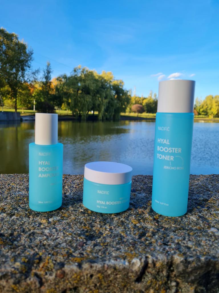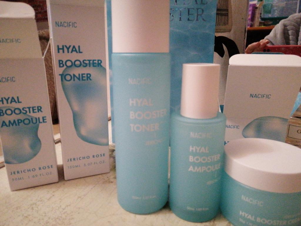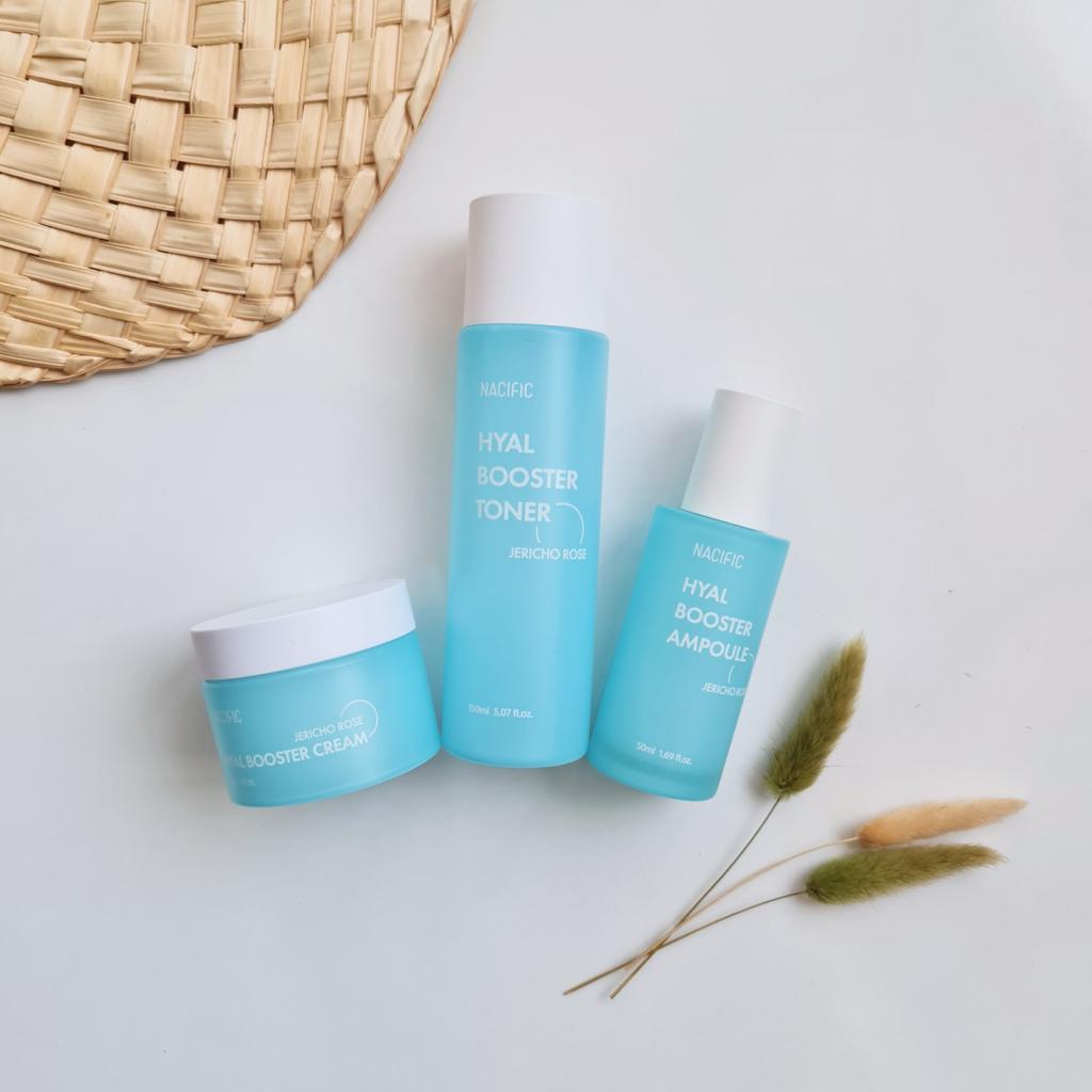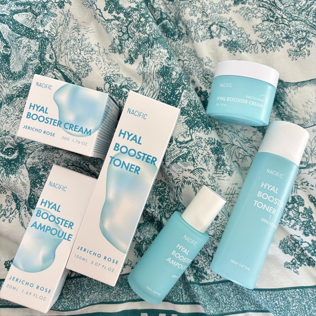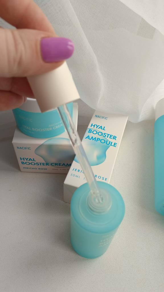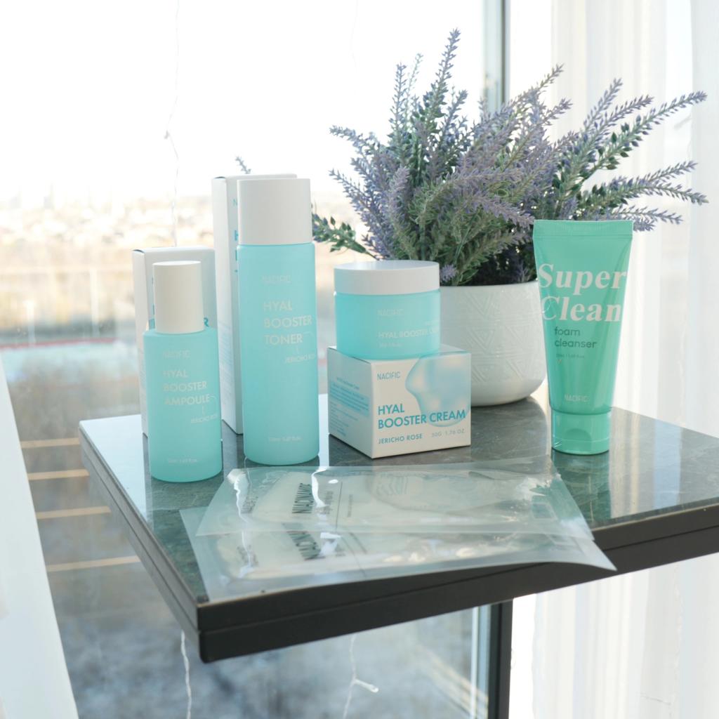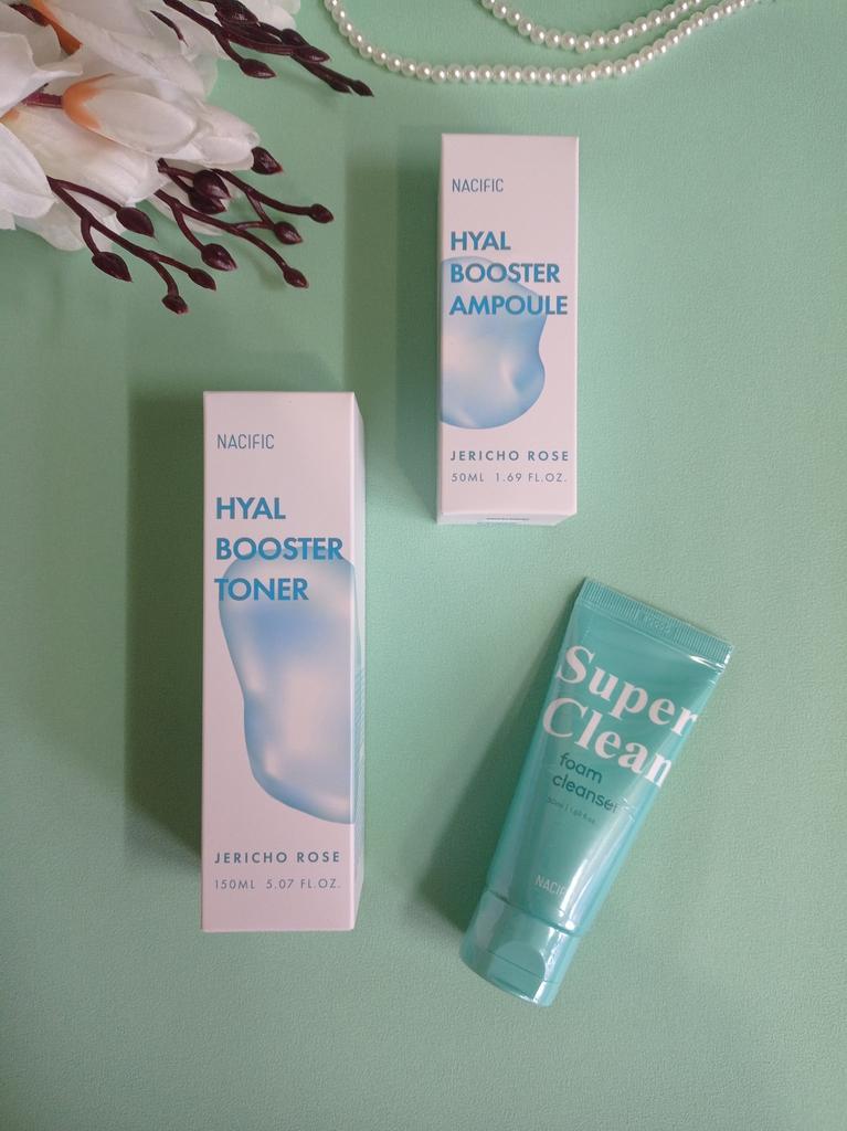 Hyal Booster Set (Toner, Ampoule, Cream + Gifts, NACIFIC Moisturizer Glowing Fresh Skin To start with, it's Korean products. Today I'm renewing the comment. It's a great product. High hydration and tightens the face. I have combination skin and this product was suitable for me and I benefited from it. Goodbye to dry and dull skin and hello to radiant and moisturized skin with Hyal Booster Ampoule. Used: Step 1: After washing your face, use toner to soften your skin.. Step 2: Take an appropriate amount of cream and spread it smoothly on the face and neck.. Step 3: Gently pat your face with your hands to allow it to absorb.. Shipping from 1 to 3 weeks The packet is properly protected against breakage.