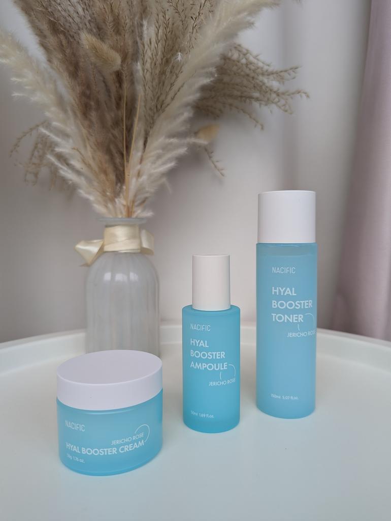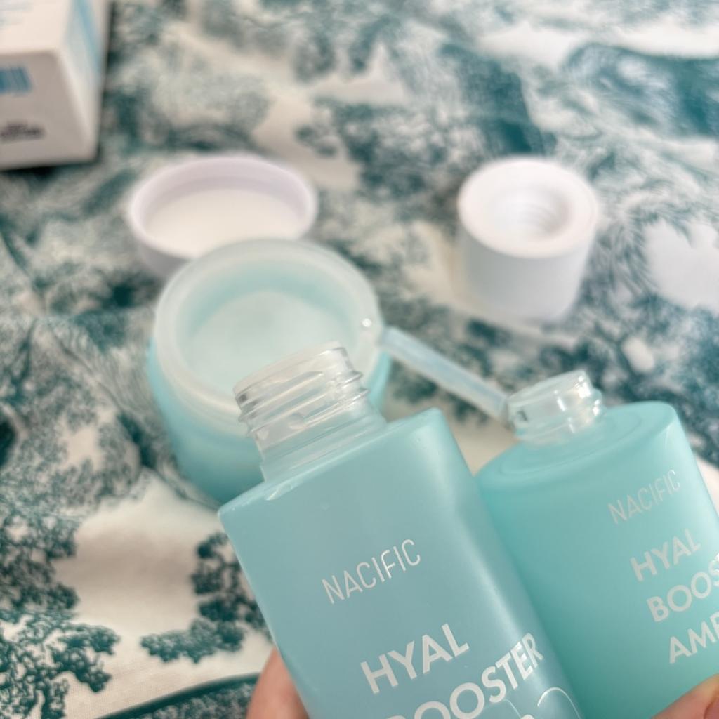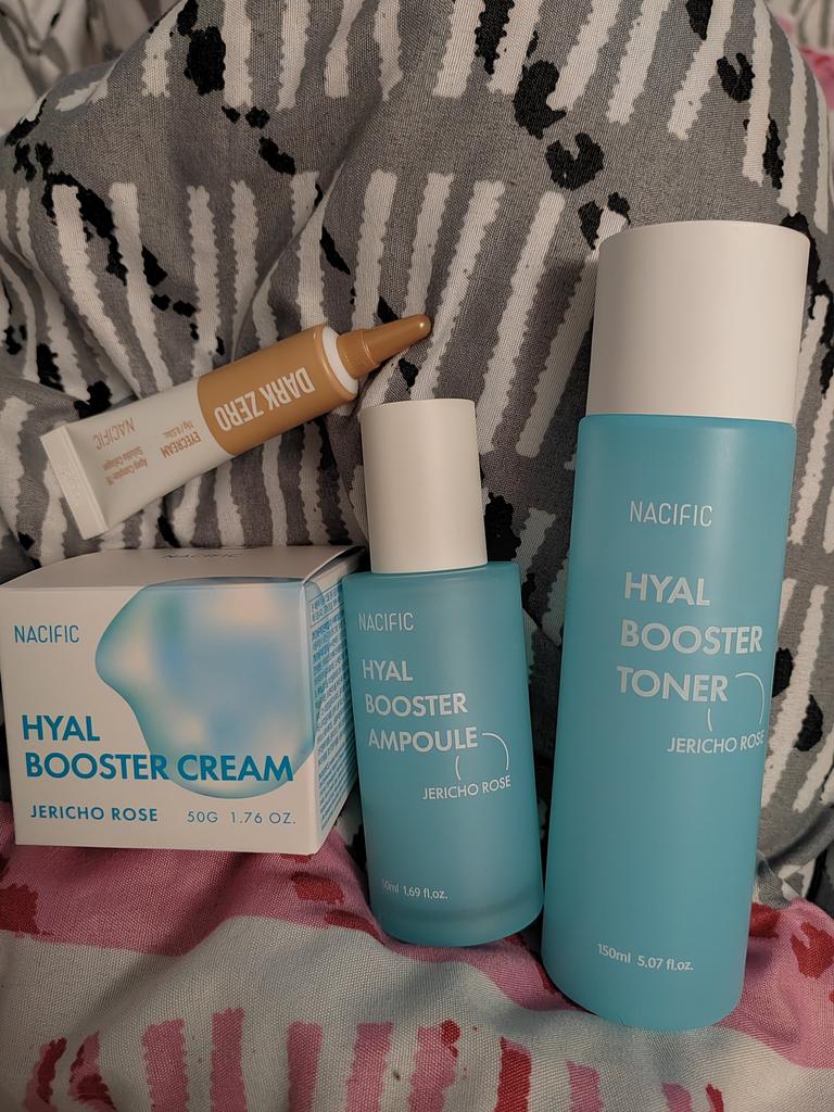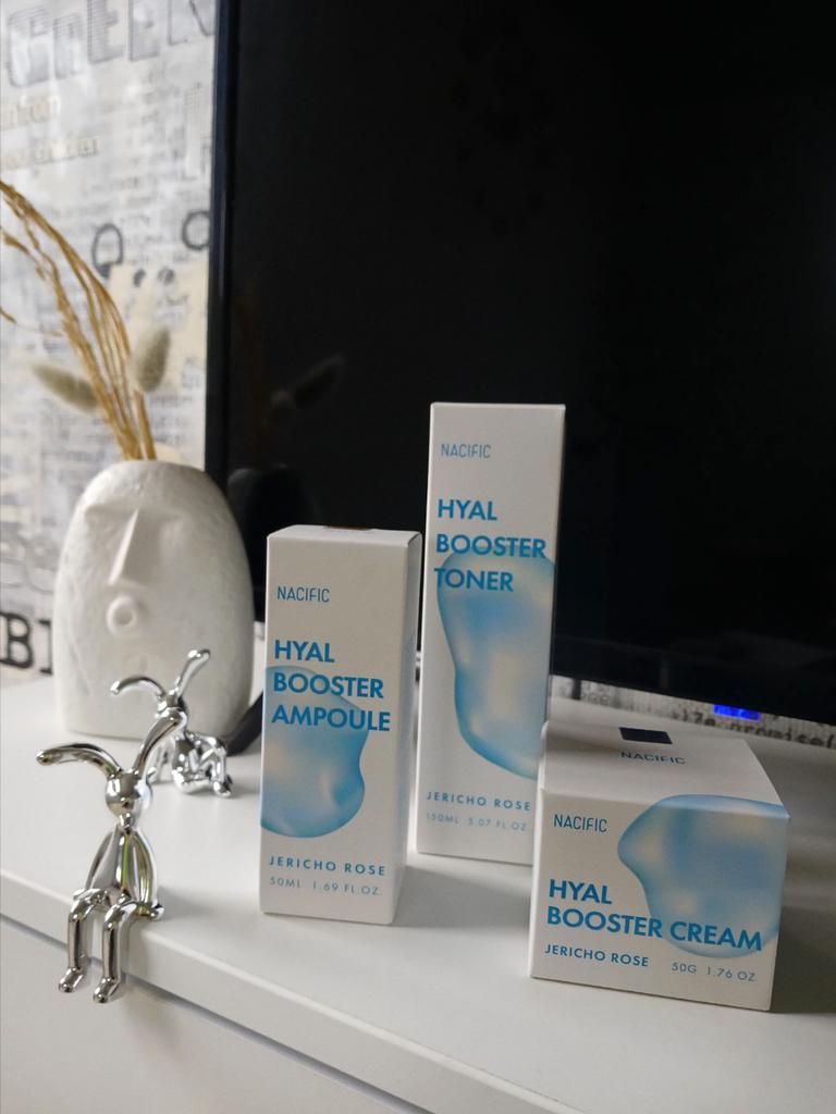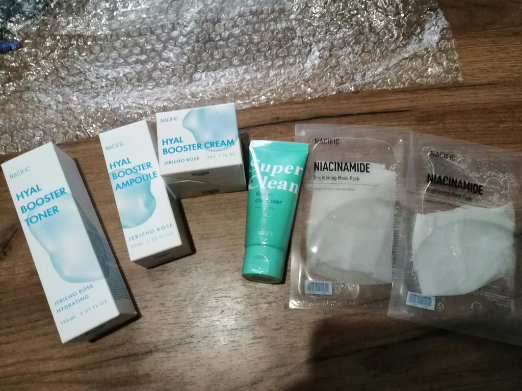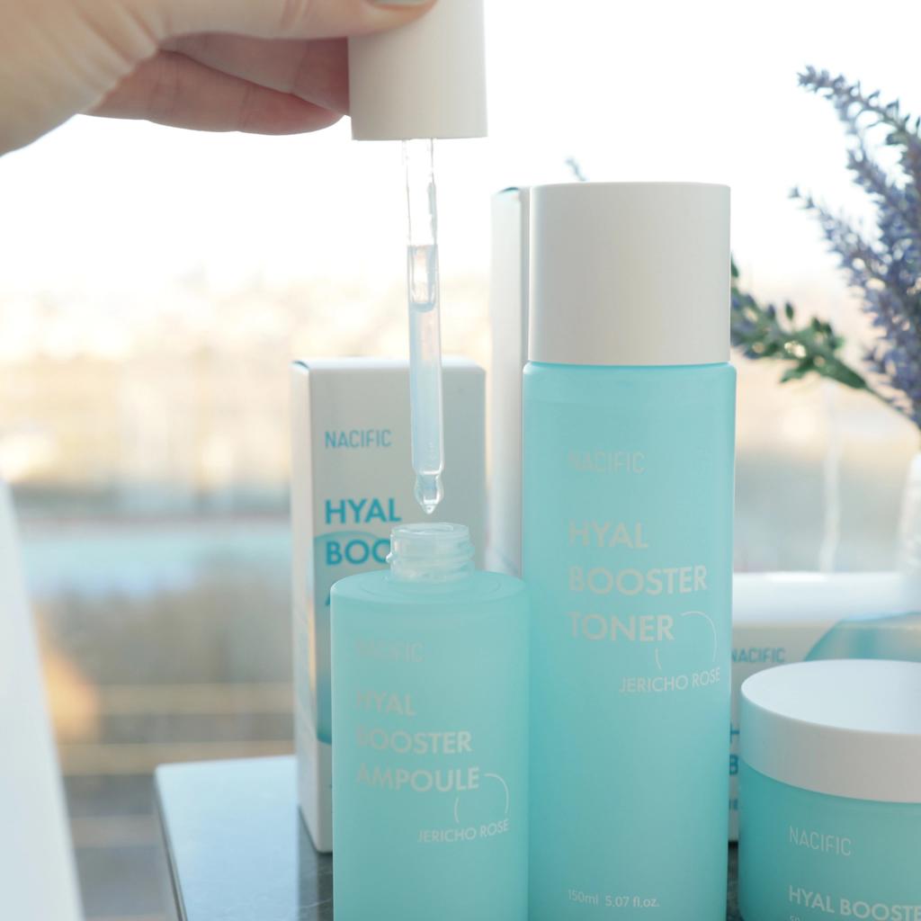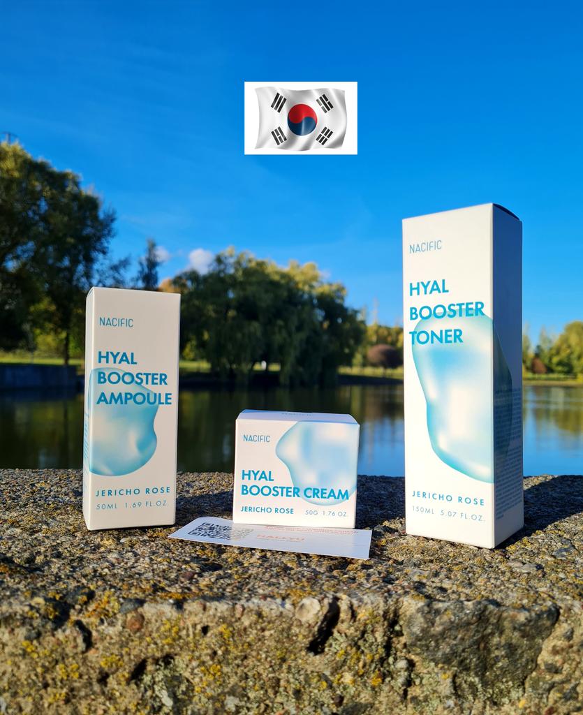 Hyal Booster Set (Toner, Ampoule, Cream + Gifts, NACIFIC Moisturizer Glowing Fresh Skin To start with, it's Korean products. Today I'm renewing the comment. It's a great product. High hydration and tightens the face. I have combination skin and this product was suitable for me and I benefited from it. Goodbye to dry and dull skin and hello to radiant and moisturized skin with Hyal Booster Ampoule. Used: Step 1: After washing your face, use toner to soften your skin.. Step 2: Take an appropriate amount of cream and spread it smoothly on the face and neck.. Step 3: Gently pat your face with your hands to allow it to absorb.. Shipping from 1 to 3 weeks The packet is properly protected against breakage.