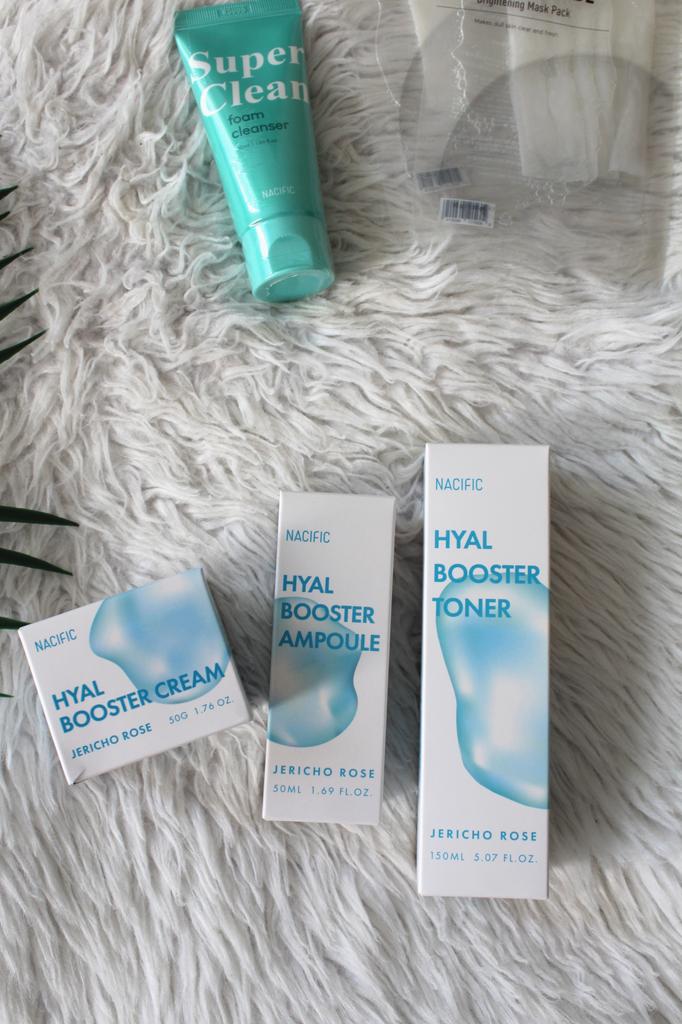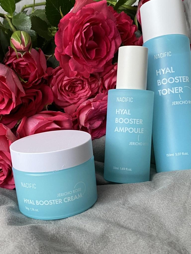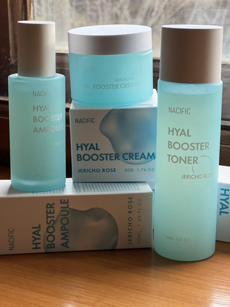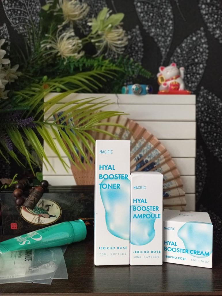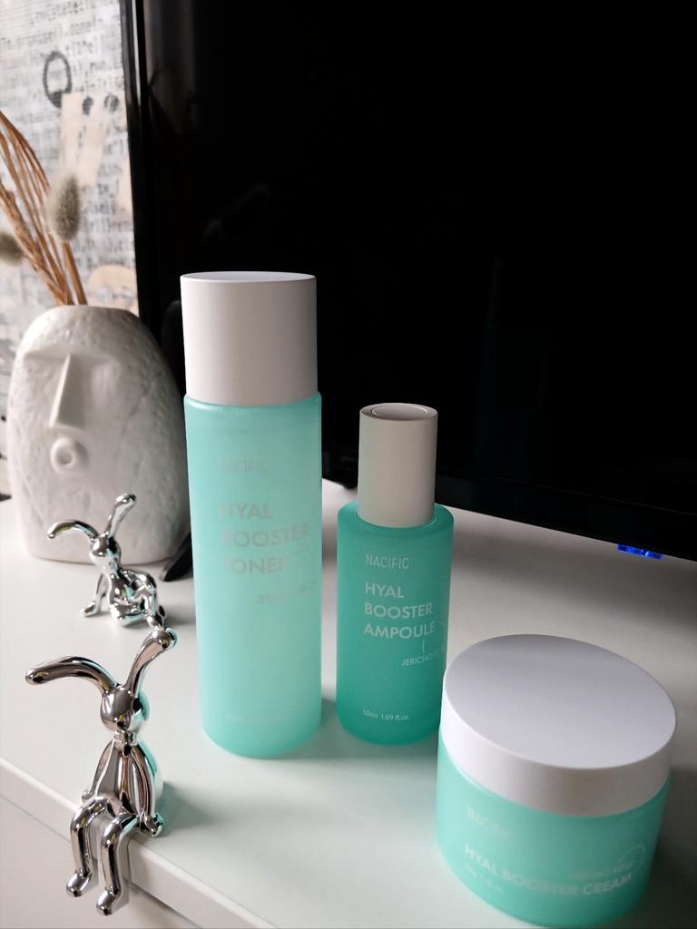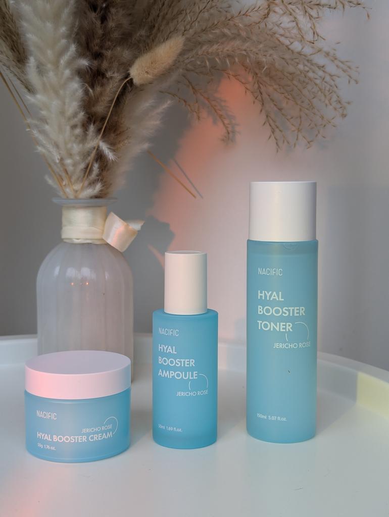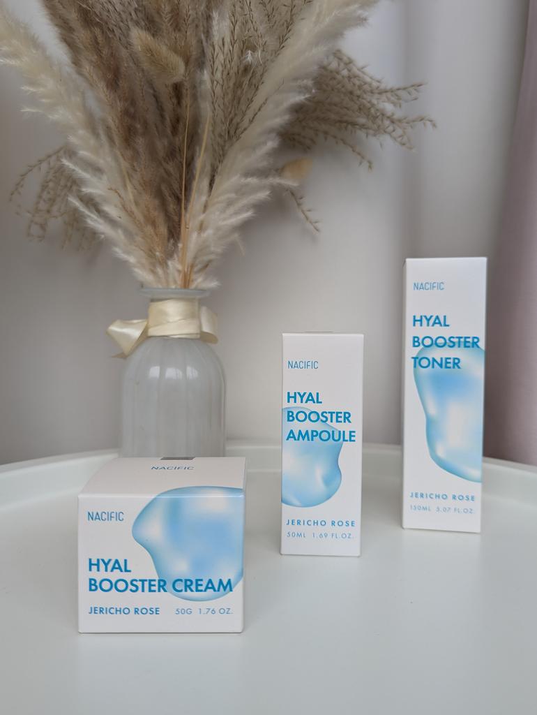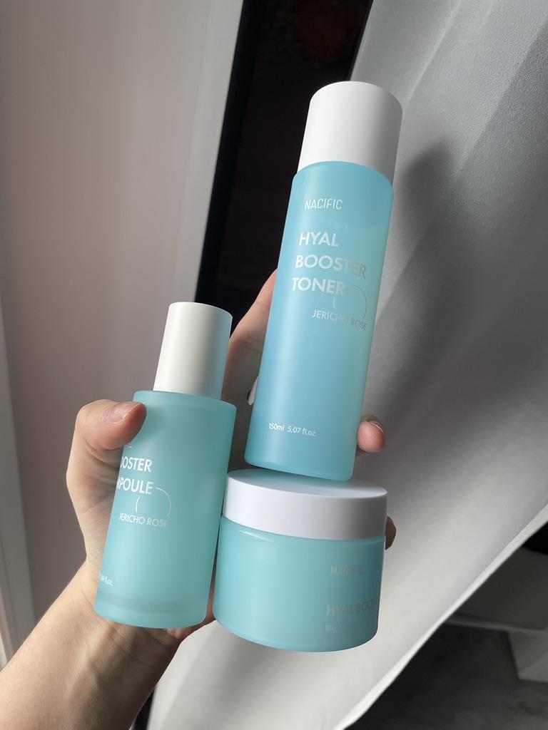 Hyal Booster Set (Toner, Ampoule, Cream + Gifts, NACIFIC Moisturizer Glowing Fresh Skin To start with, it's Korean products. Today I'm renewing the comment. It's a great product. High hydration and tightens the face. I have combination skin and this product was suitable for me and I benefited from it. Goodbye to dry and dull skin and hello to radiant and moisturized skin with Hyal Booster Ampoule. Used: Step 1: After washing your face, use toner to soften your skin.. Step 2: Take an appropriate amount of cream and spread it smoothly on the face and neck.. Step 3: Gently pat your face with your hands to allow it to absorb.. Shipping from 1 to 3 weeks The packet is properly protected against breakage.