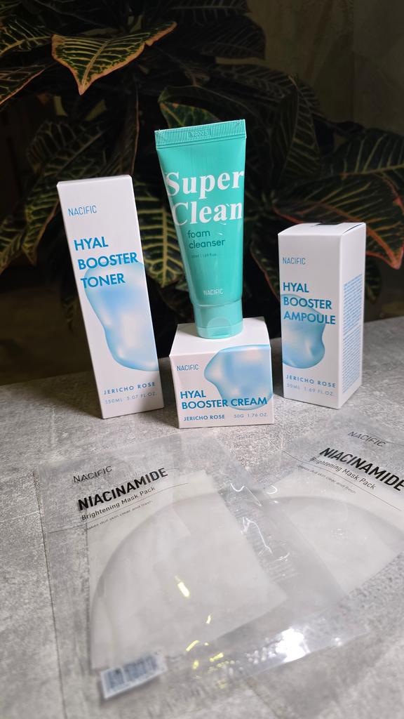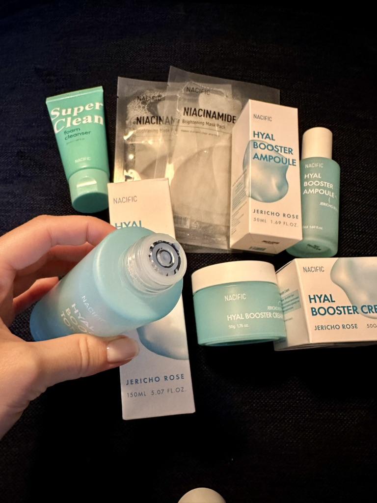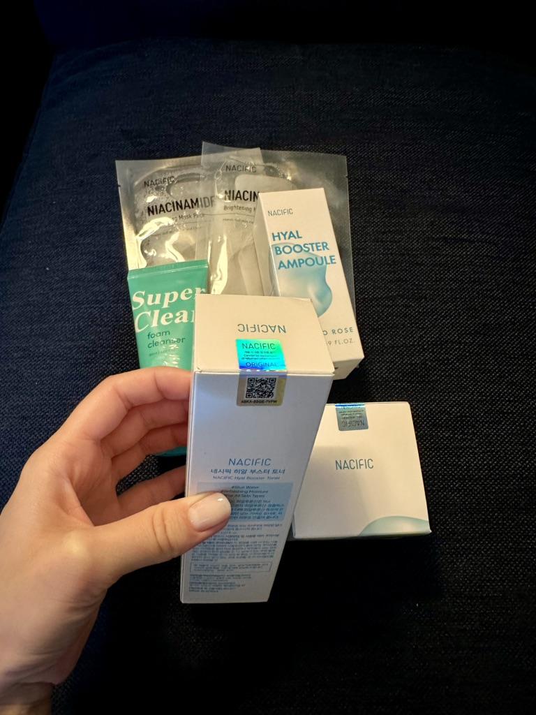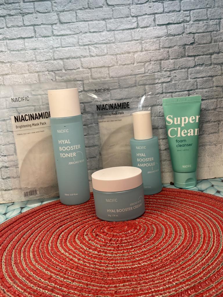 I discovered a real treasure in the world of Korean beauty! This NACIFIC set is a delight for the senses. From the first moment, I was captivated by its elegant and sophisticated design. The products feel like a caress on the skin thanks to their light texture and subtle scent.. What surprised me the most was the effectiveness of this hyaluronic booster. My skin looks more radiant, hydrated and even. Fine lines have diminished and my complexion feels firmer and more elastic. It's like I've looked a few years younger!! The combination of natural ingredients such as Jericho rose, aloe vera and hyaluronic acid is a real gift for my skin. In addition, the brightening masks and cleansing foam are the perfect complement to a complete facial care routine.. If you are looking for a high quality cosmetic set that actually works, look no further! NACIFIC has exceeded all my expectations