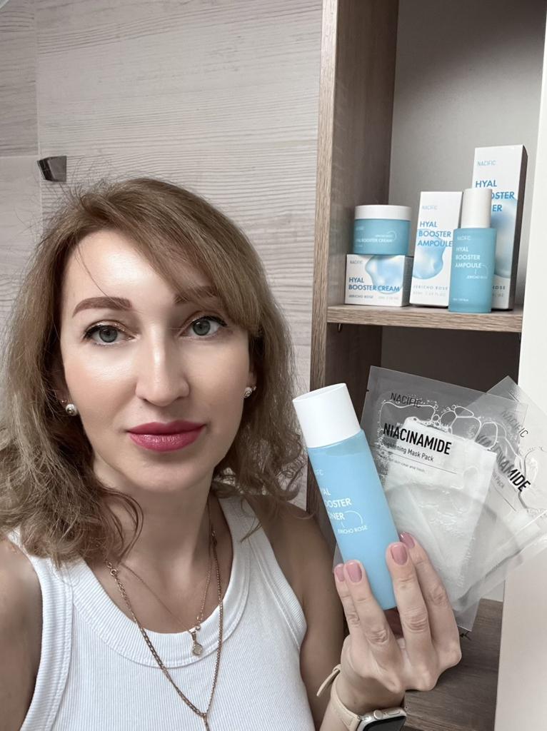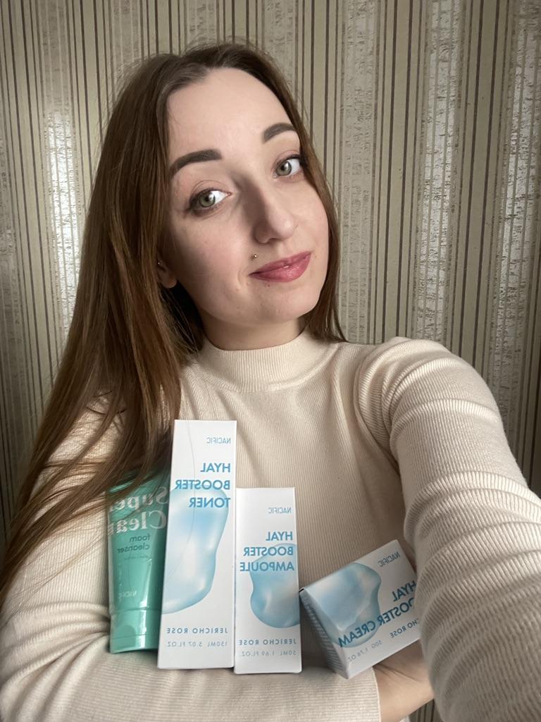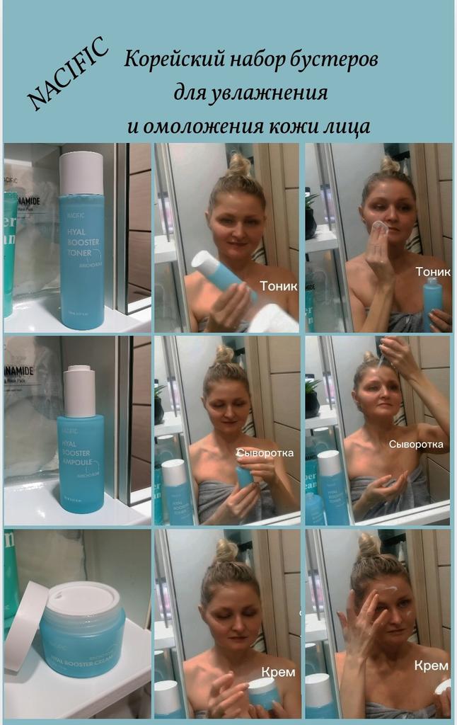 A luxurious set of care cosmetics of the Korean brand NACIFIC 🇰🇷 HYAL BOOSTER 💙 Almost every day, the modern cosmetic industry presents the world with more and more innovative products that can quickly cope with problems that seemed intractable until recently. Facial boosters are one of such products of the new generation, which are confidently winning the hearts of young ladies today ❤️. (Translated from English, booster is "amplifier" or "accelerator".) The set includes: 1. Toner 150 ml. 2. Serum 50 ml 3. Cream 50 ml + as a gift 🎁 the seller included two brightening masks with niacinamide and a foam for washing 50 ml 💧 Branded boxes with holographic protection. Bottles and jars of blue frosted glass with white caps. Everything looks just great. It seems that these are not cosmetics, but fluffy clouds in the spring sky ☺️🌥️💙 The filling did not disappoint either. The aroma of the products is thin, delicate and barely perceptible. The products moisturize the skin well, making it smooth and silky. The skin becomes more elastic, small wrinkles are smoothed out. The effectiveness of the means is ensured by a rich composition. Here we have a whole bunch of goodies for our skin: rose of Jericho extract, aloe extract, shea butter, vitamin C, camellia leaf extract, arginine, hyaluronic acid, bamboo extract. And this is far from the whole list. The brand is super. The tools are really effective. If the information was useful, put it as a favorite ❤️ I received the goods in 17 days by "Nova Poshta" 🚀 The track was tracked completely. The arrival at the point of issue was announced by sms 📲. Packaging: cardboard box with logo. Cosmetics were carefully wrapped in packaging material. Everything arrived intact. Happy shopping and fast deliveries to everyone 🛍️☺️🚀🍁 And remember that every woman is a star, so shine brighter 🌞.