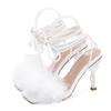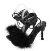 Eilyken Fashion Fluffy Feather Strange High Heels Sexy Ankle Strap Sandals Women Square Toe Party Dress Shoes Pumps
