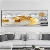 Landscape Golden Mountain Posters and Prints Canvas Painting Tree Boat Deer Cuadros Light Luxury Wall Art Living Room Home Decor