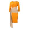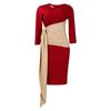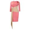 Large Size Women Fashion Patchwork Mid Sleeves Business Dress Ladies Elegant One Piece Skew Collar Sheath Dress