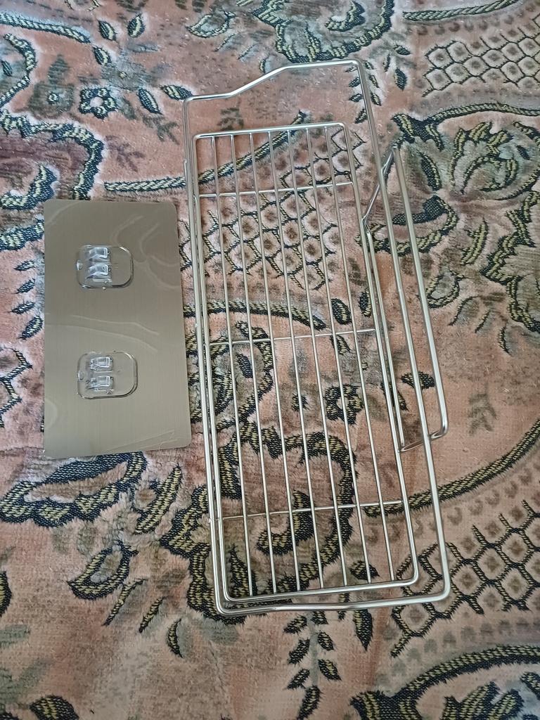 Holds firmly, the hooks are glued a little unevenly, because of this the empty shelf is not perfectly flat, but with the filling it is not noticeable. Delivery is not standard, without packaging, but this did not affect the product