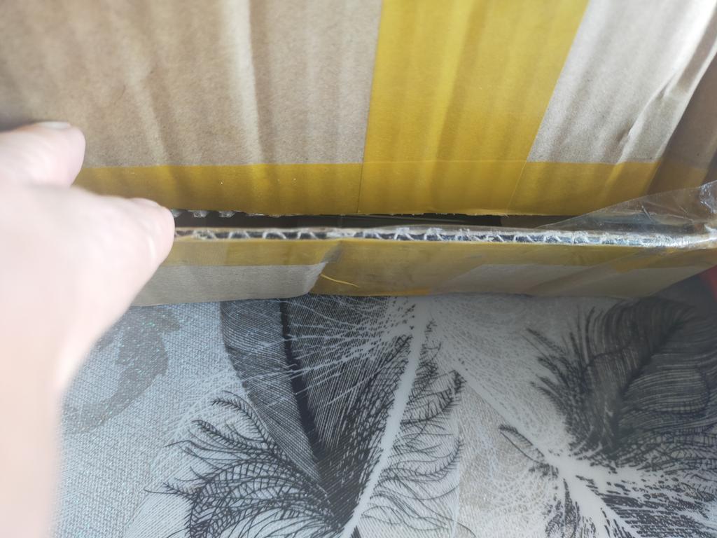 Damaged box, bent edge of one shelf.