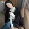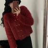 Heavy Industry Cardigan Female Coat with Foreign Imitation Mink Fleece Knitted Cardigan Double Row Heart Button Coat Female