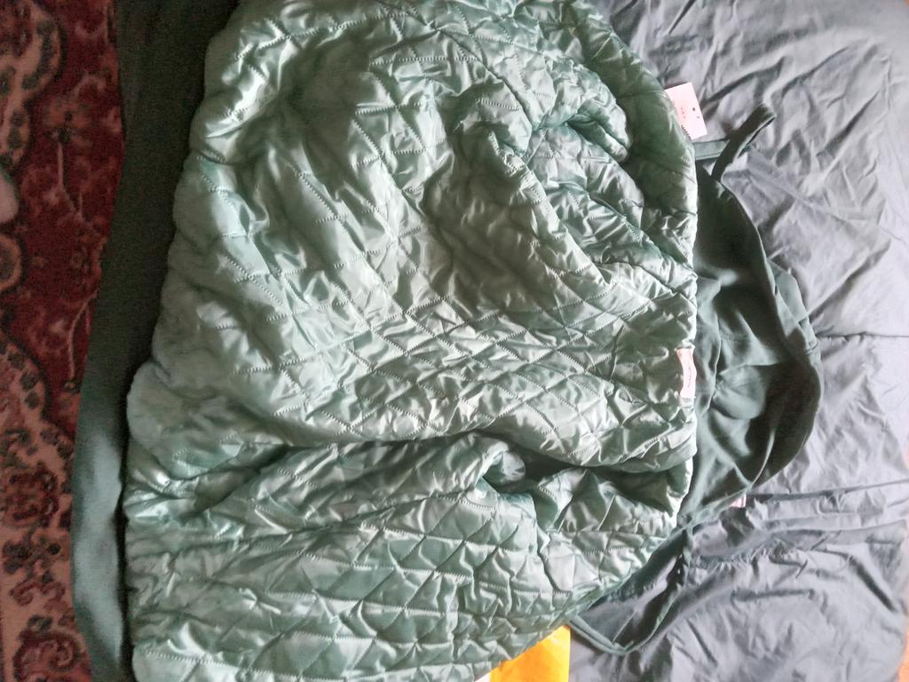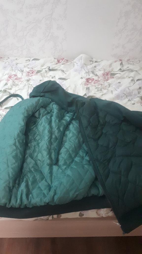 The jacket is not a sweatshirt at all, as was written earlier. Nice, warm. If on top the sleeves and hood are made of fabric, then on the inside the entire jacket is like the chest, quilted. I think that it won’t even be blown away much. I really like it, thank you!