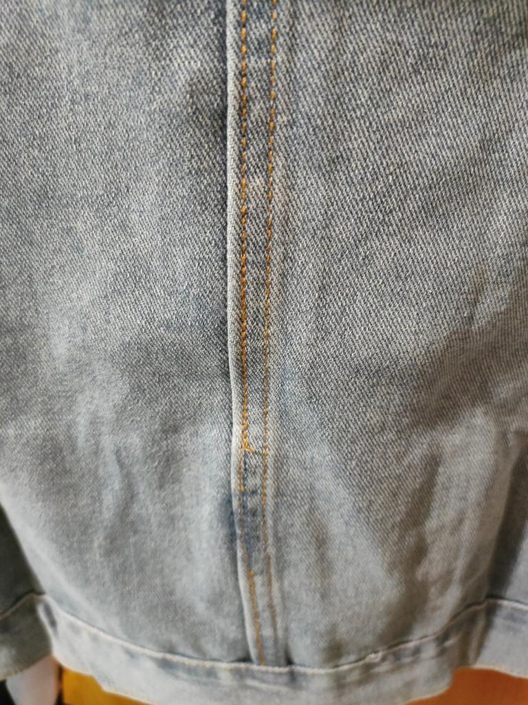 The vest is the bomb!!! Thick denim. The loops are a bit small.