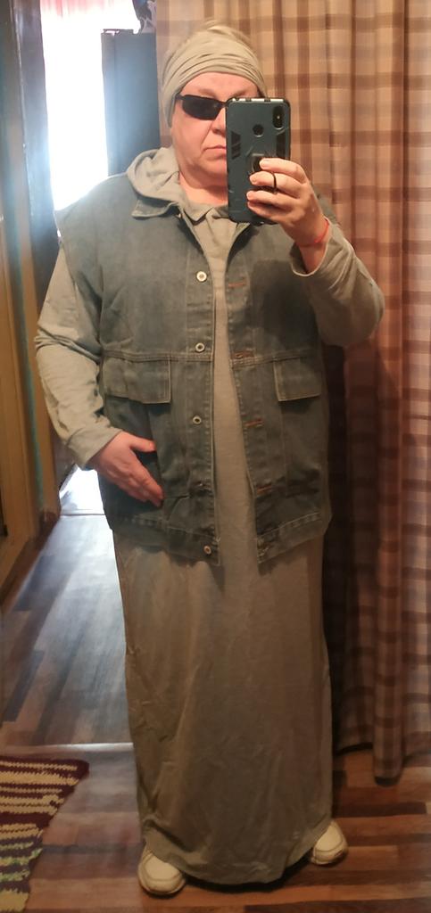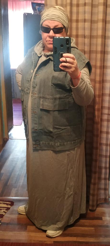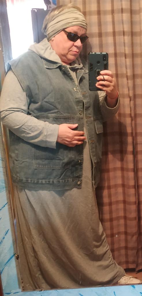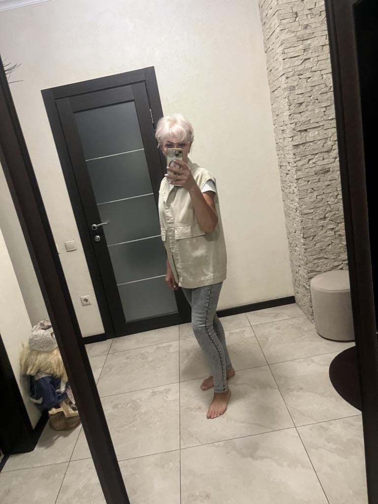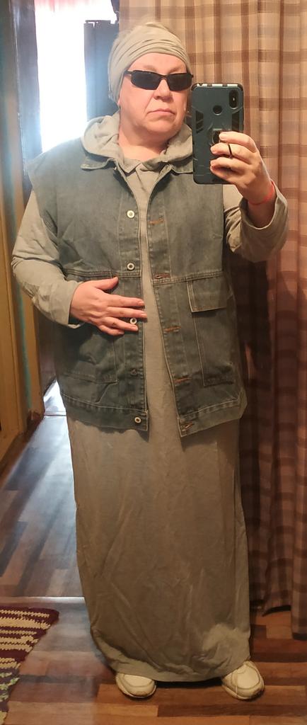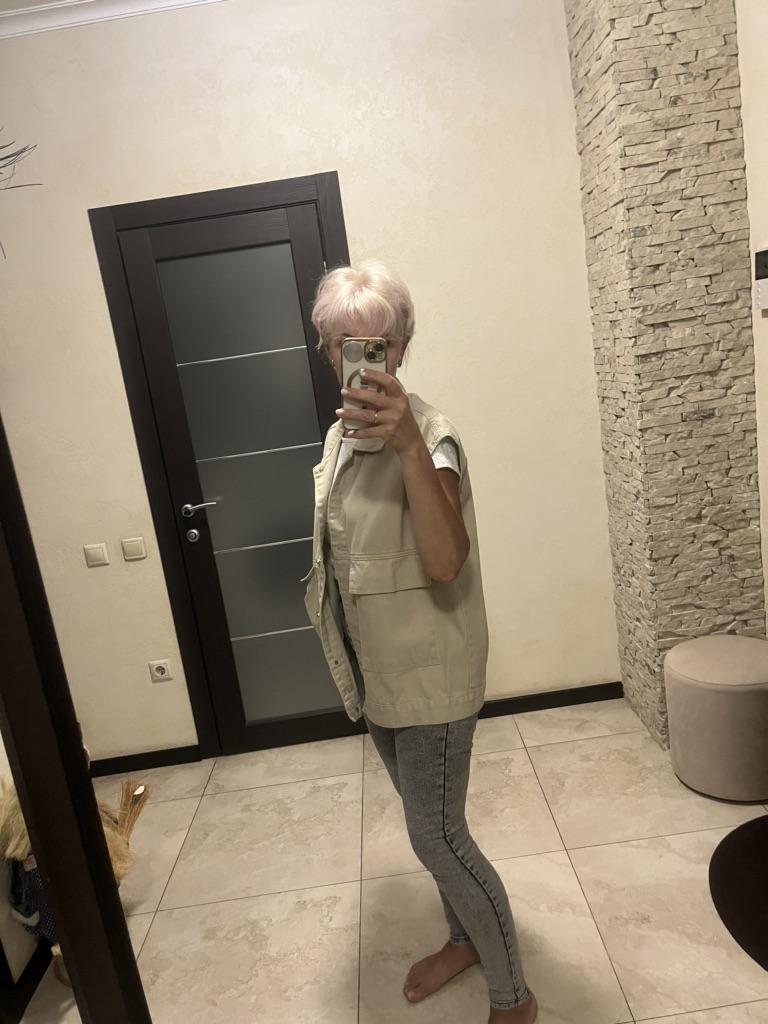 The quality of the vest is good, it feels like cotton, although the label says it is viscose. Oversize very much. My size is 56-58. Under this vest you can wear not only a sweater, but also a thin jacket